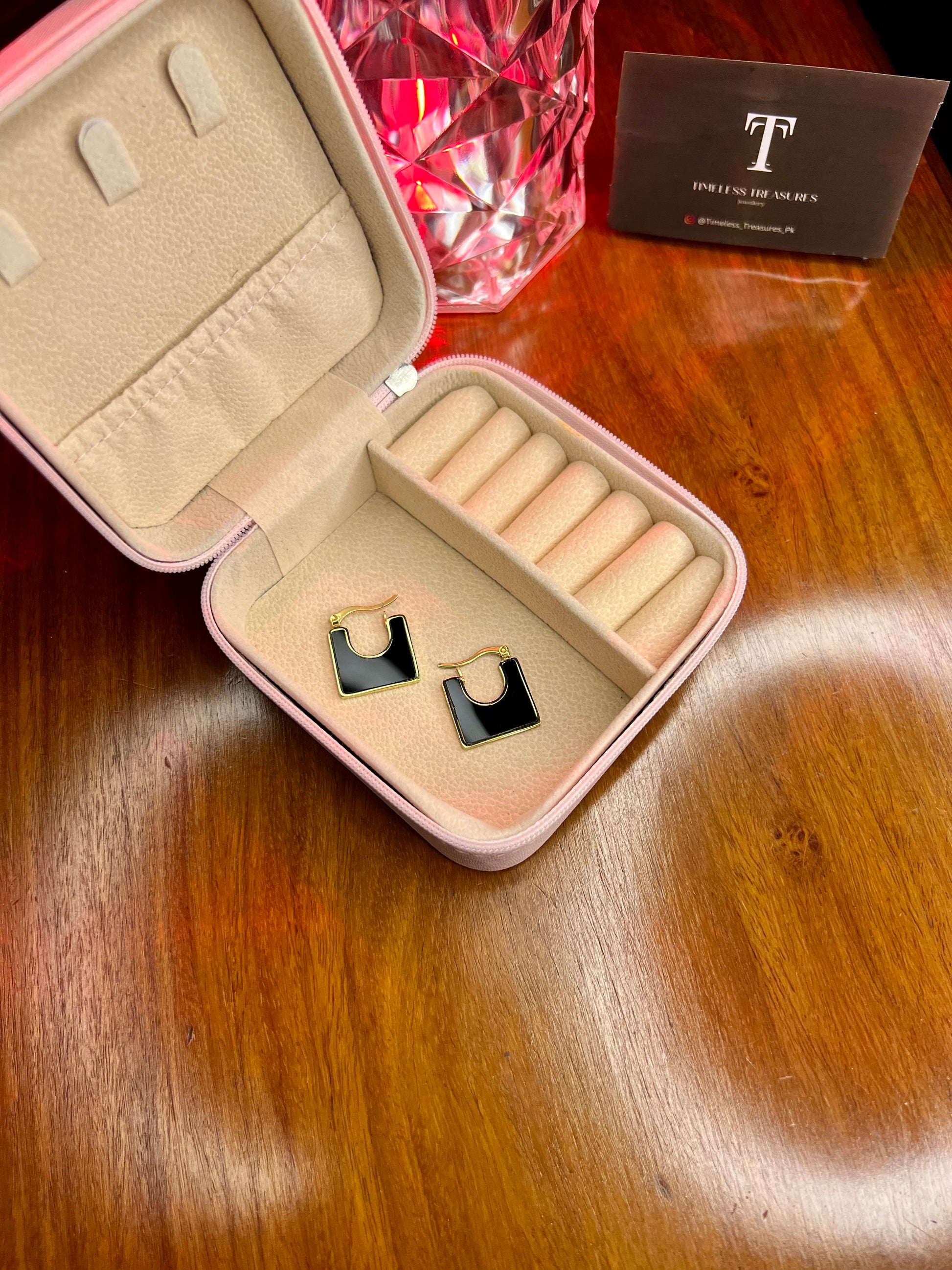 Premium Quality Stainless Steel 18k Black Square Enamel Earrings
