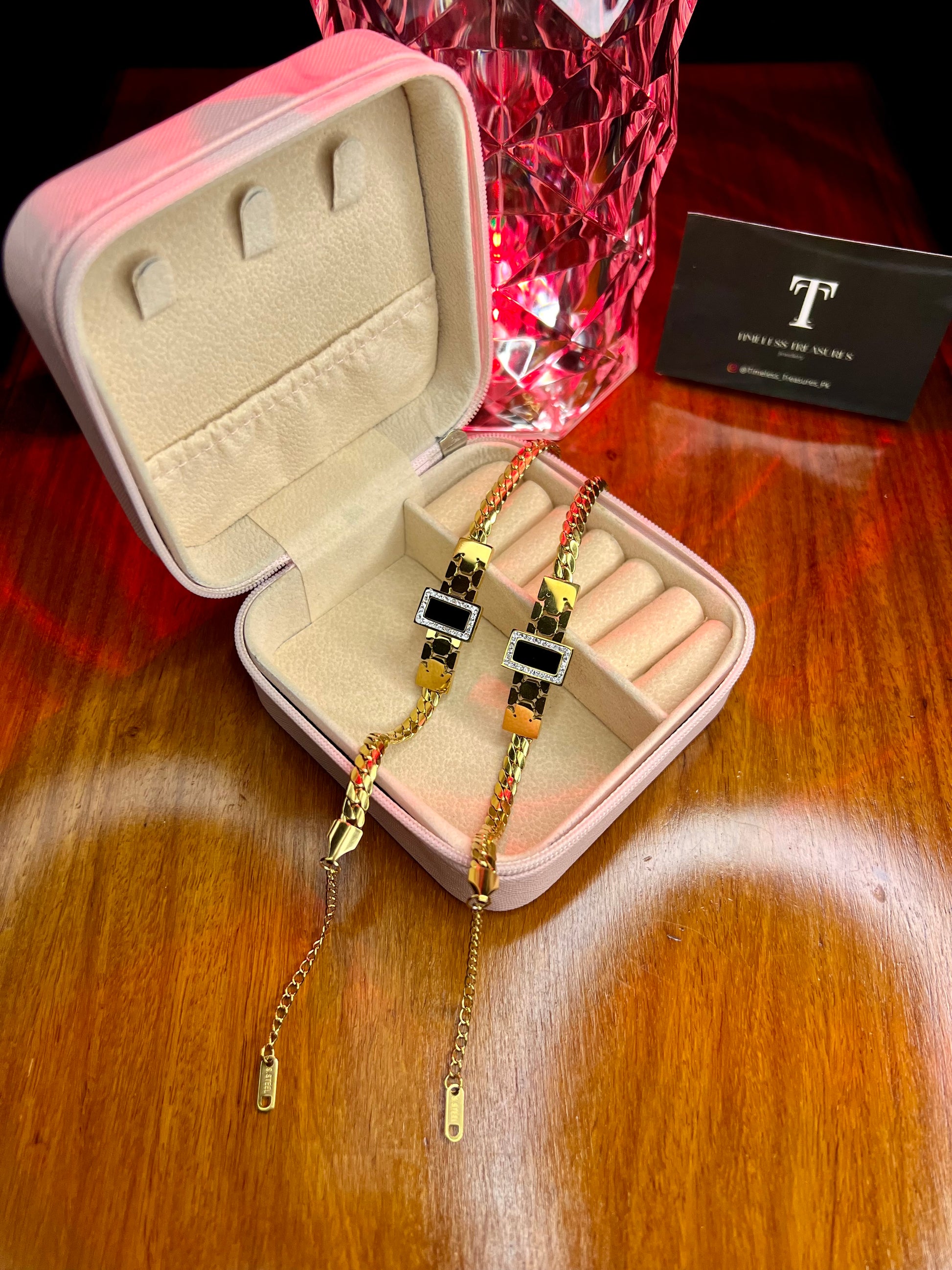 Premium Quality Stainless Steel 18k Black Tag Hexagon Bracelet