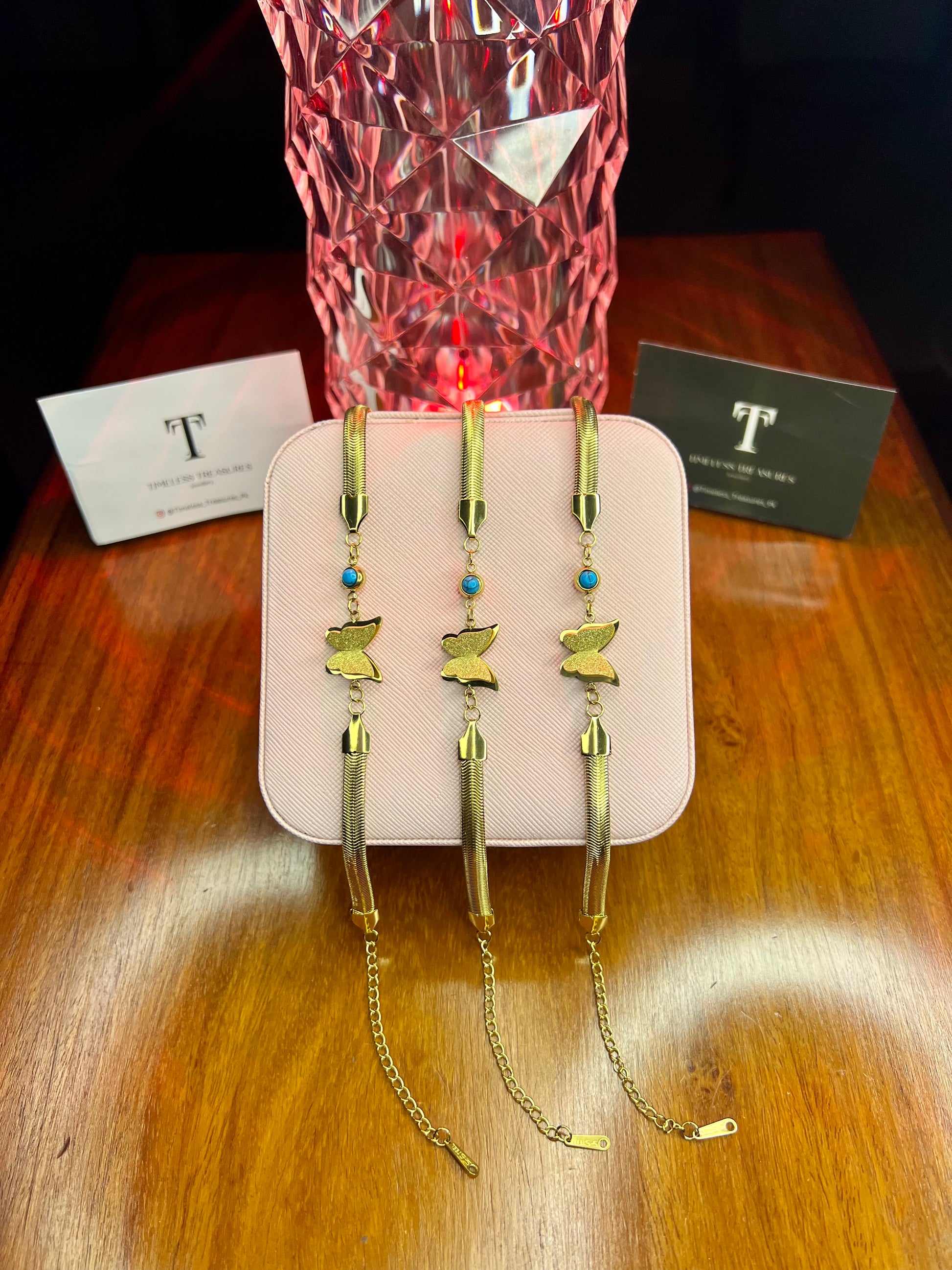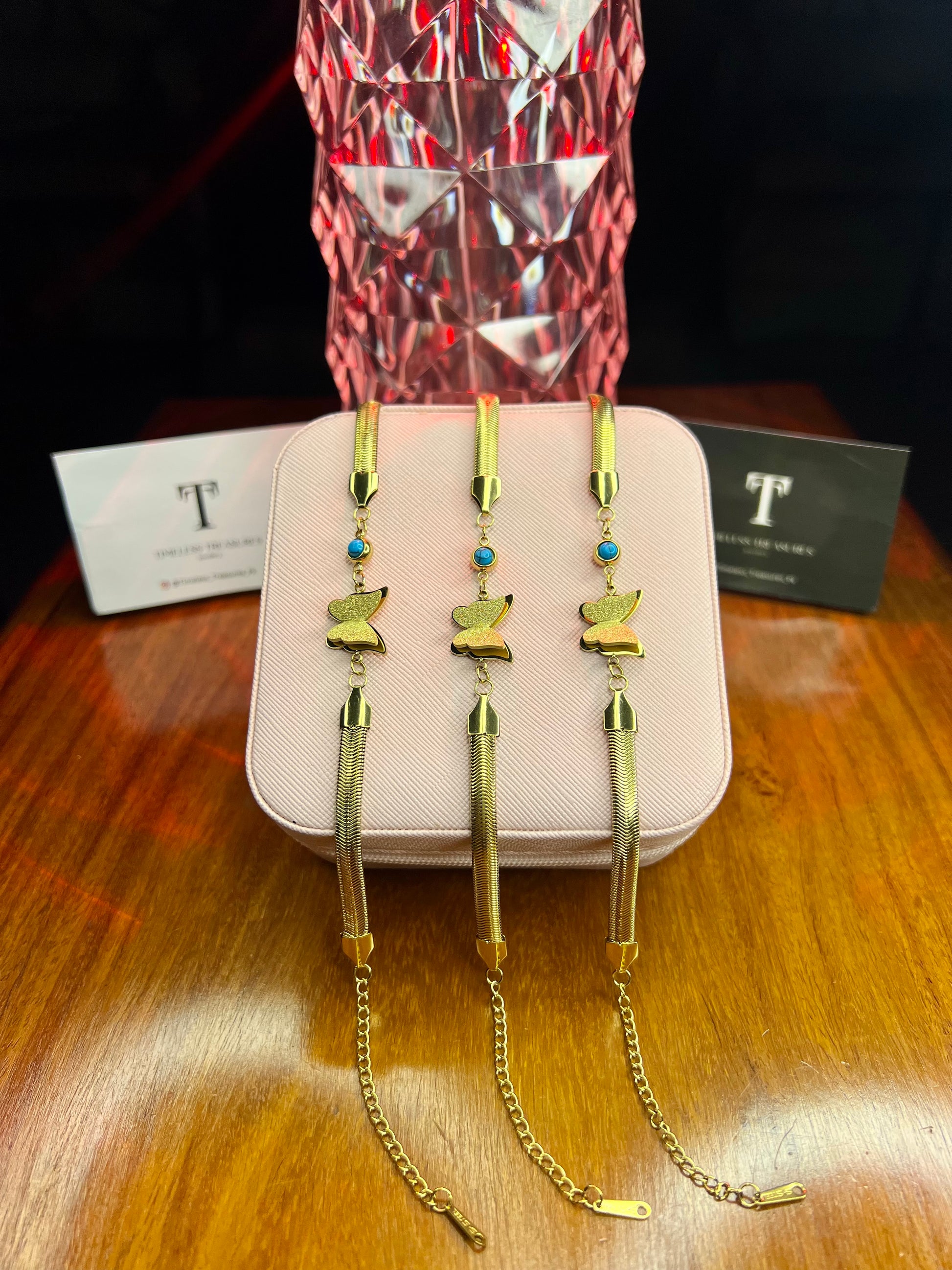 Premium Quality Stainless Steel 18k Butterfly High Quality Snake Chain Bracelet