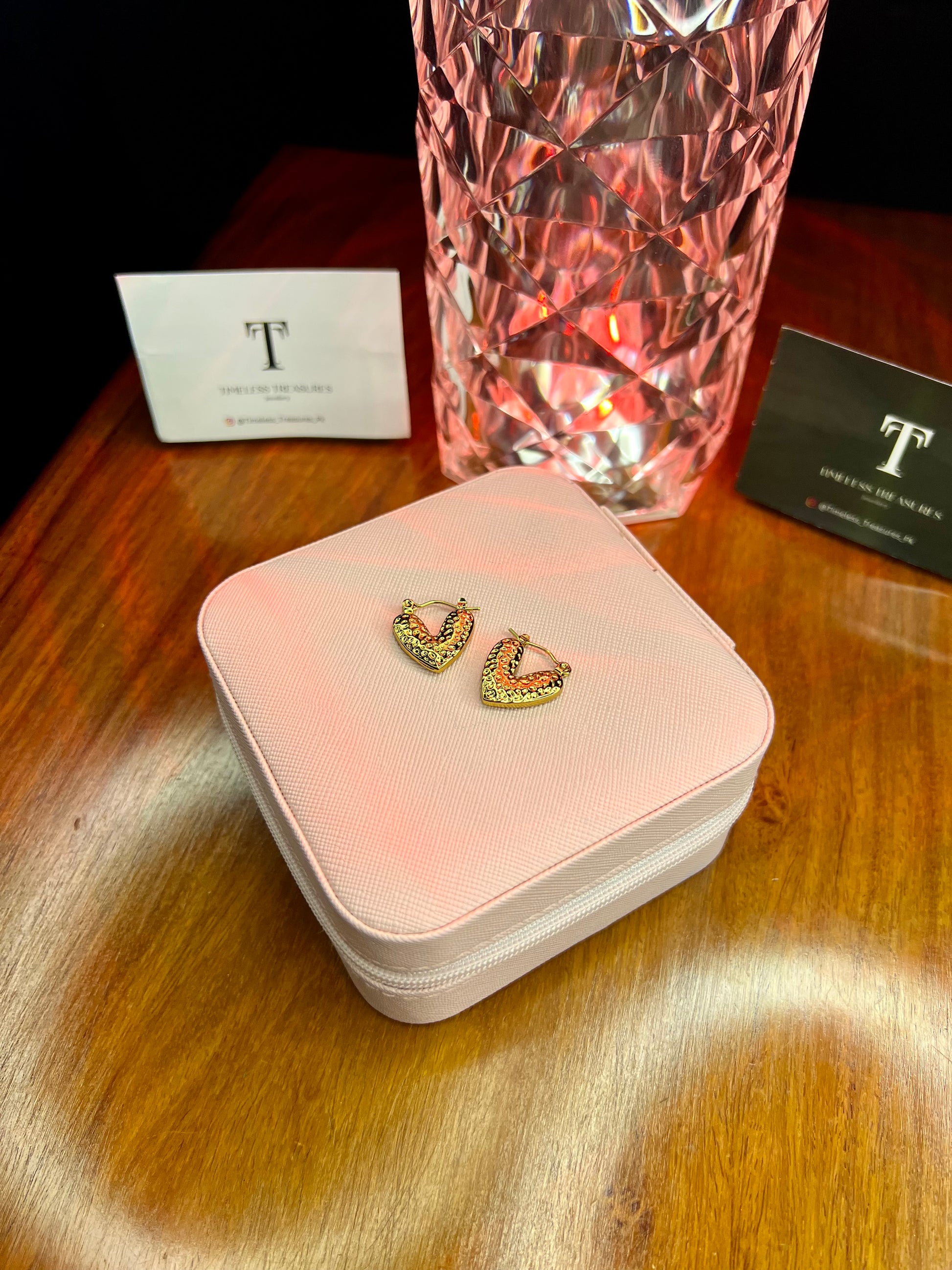 Premium Quality Stainless Steel 18k Dotted Heart Earrings