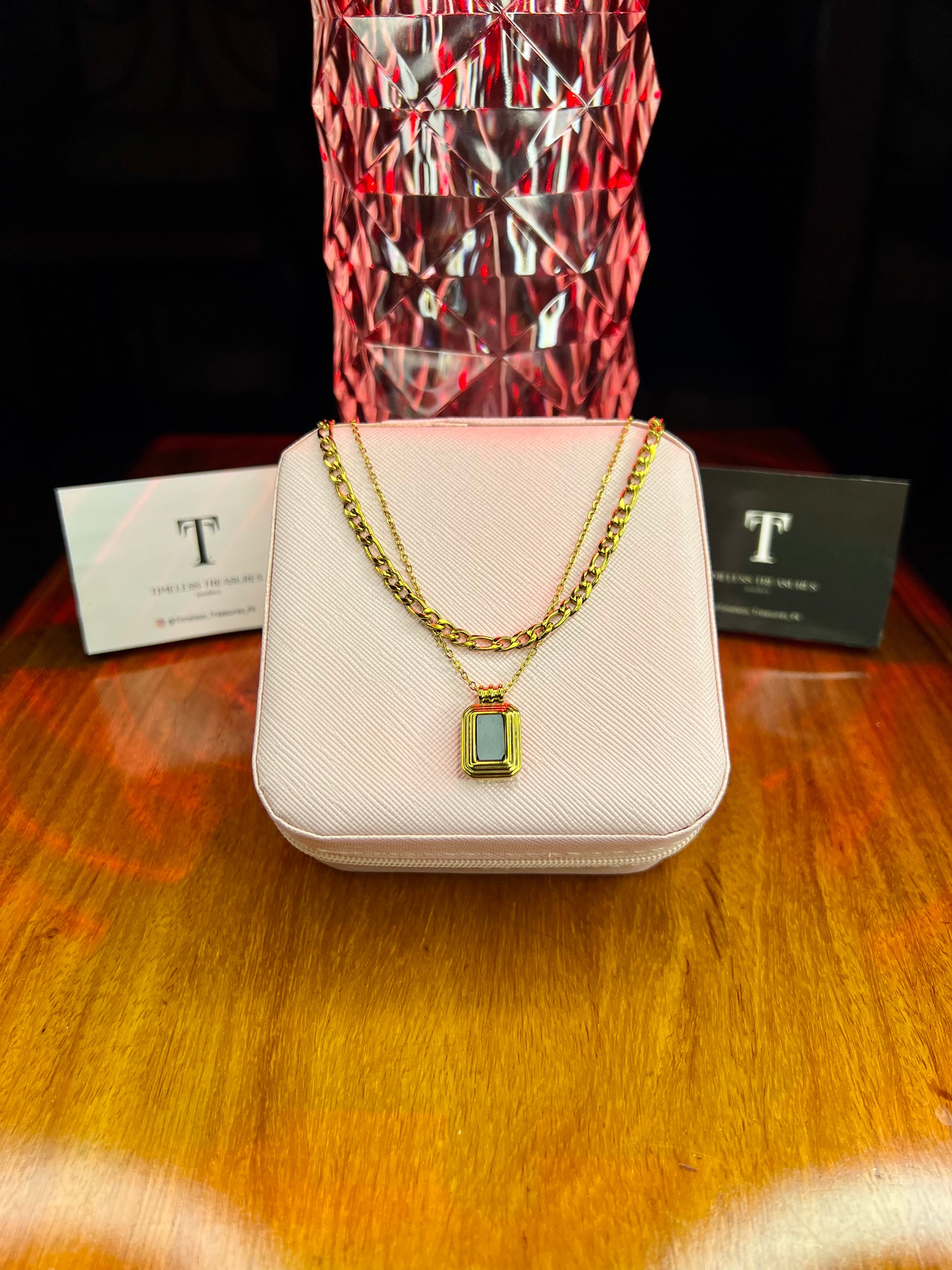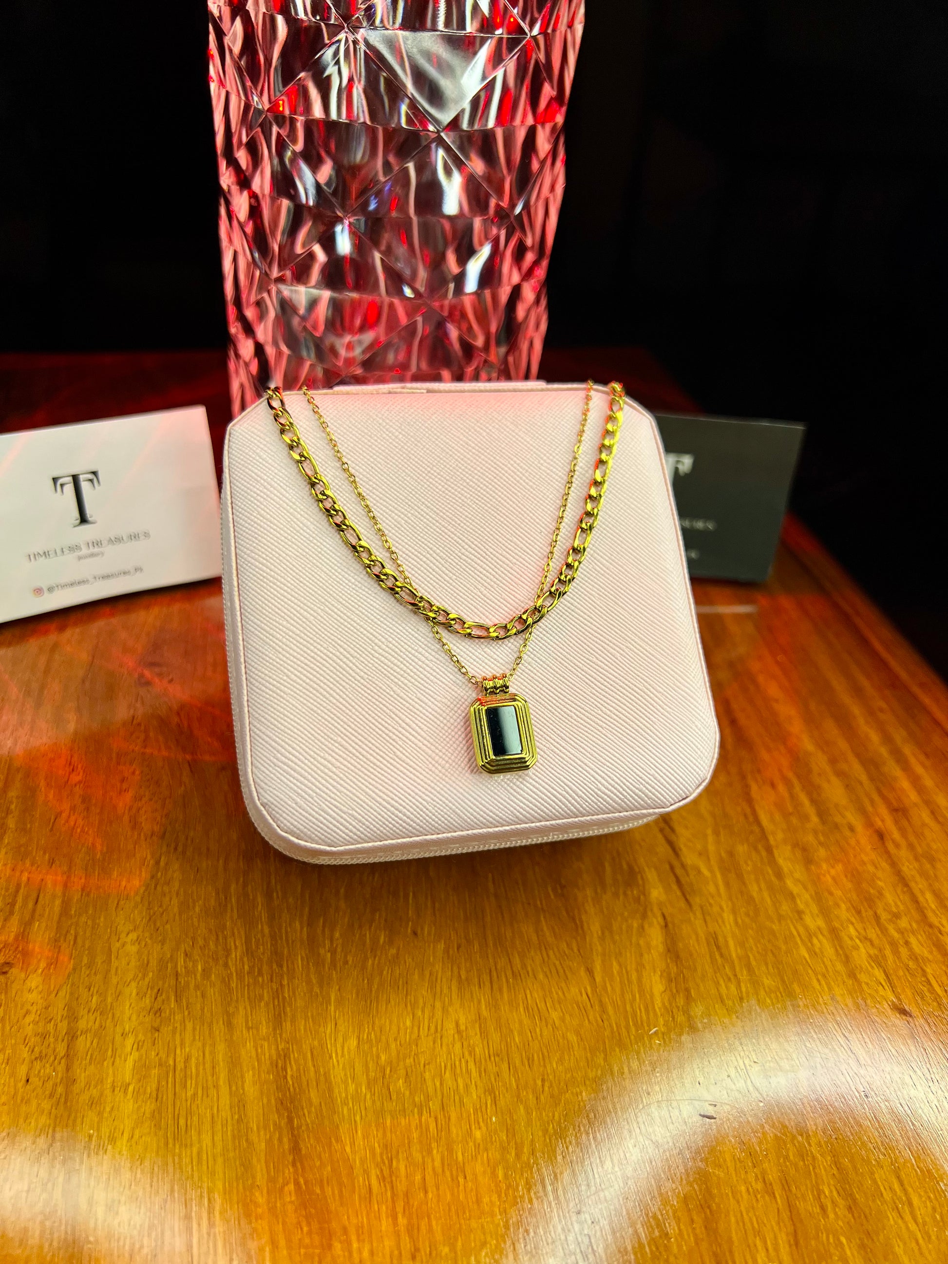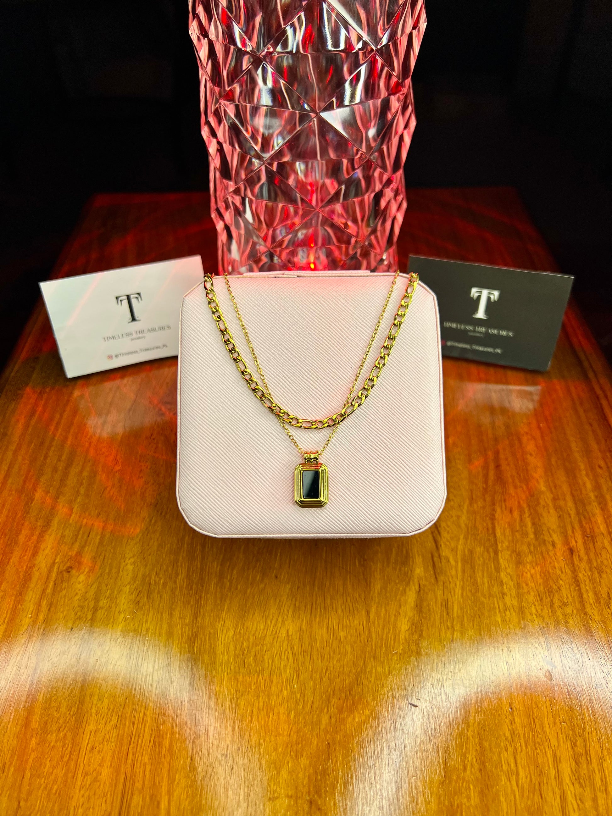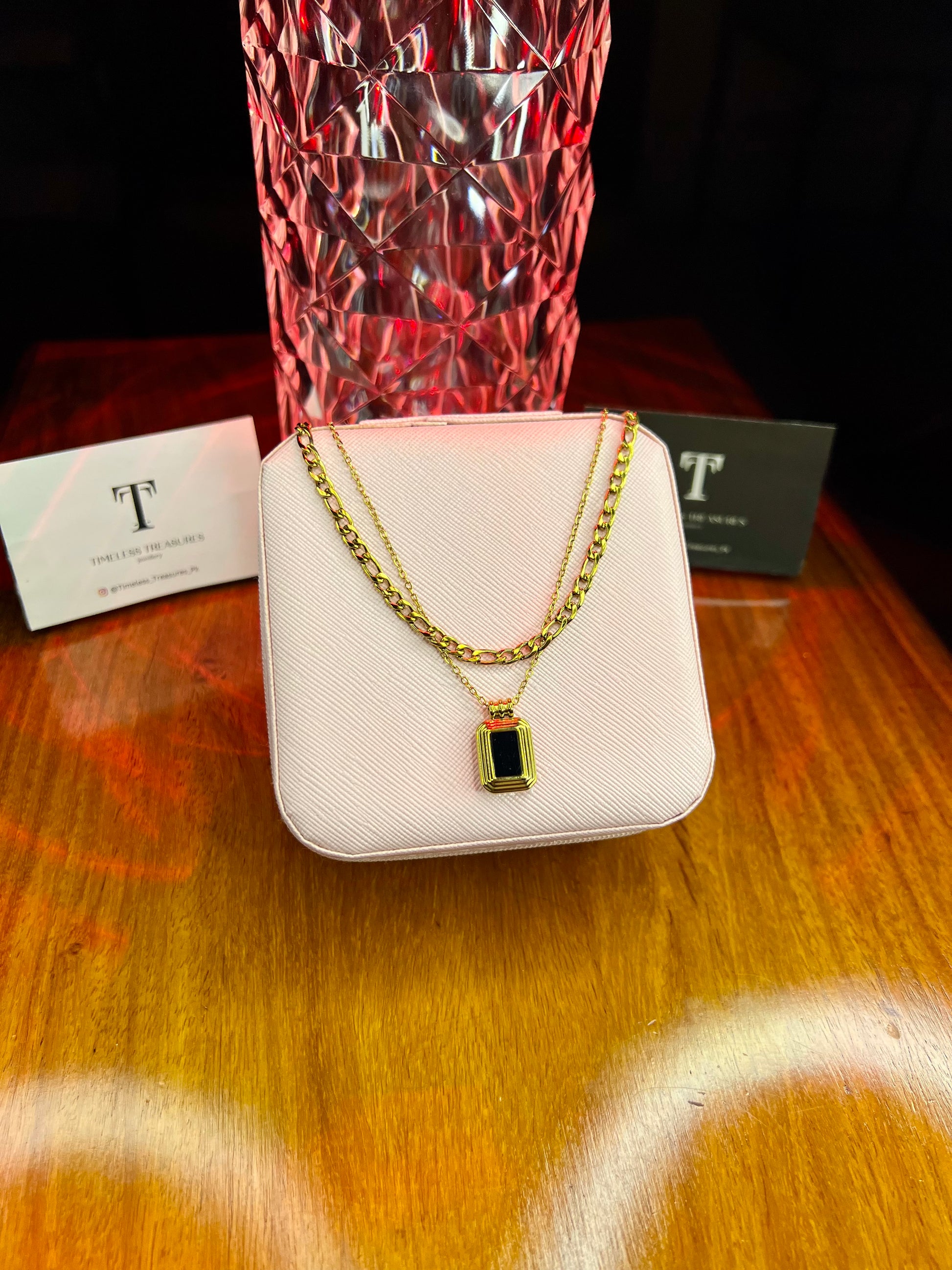 Premium Quality Stainless Steel 18k Double Chain Black Shell Necklace