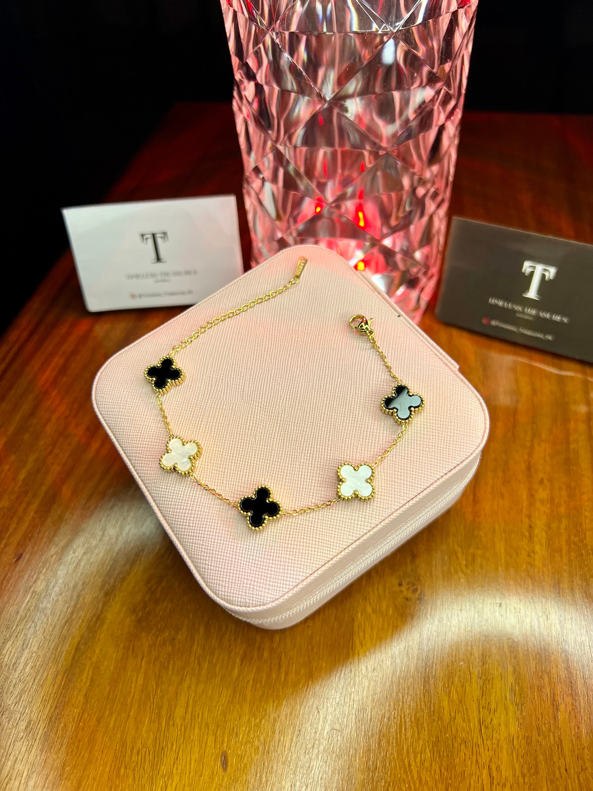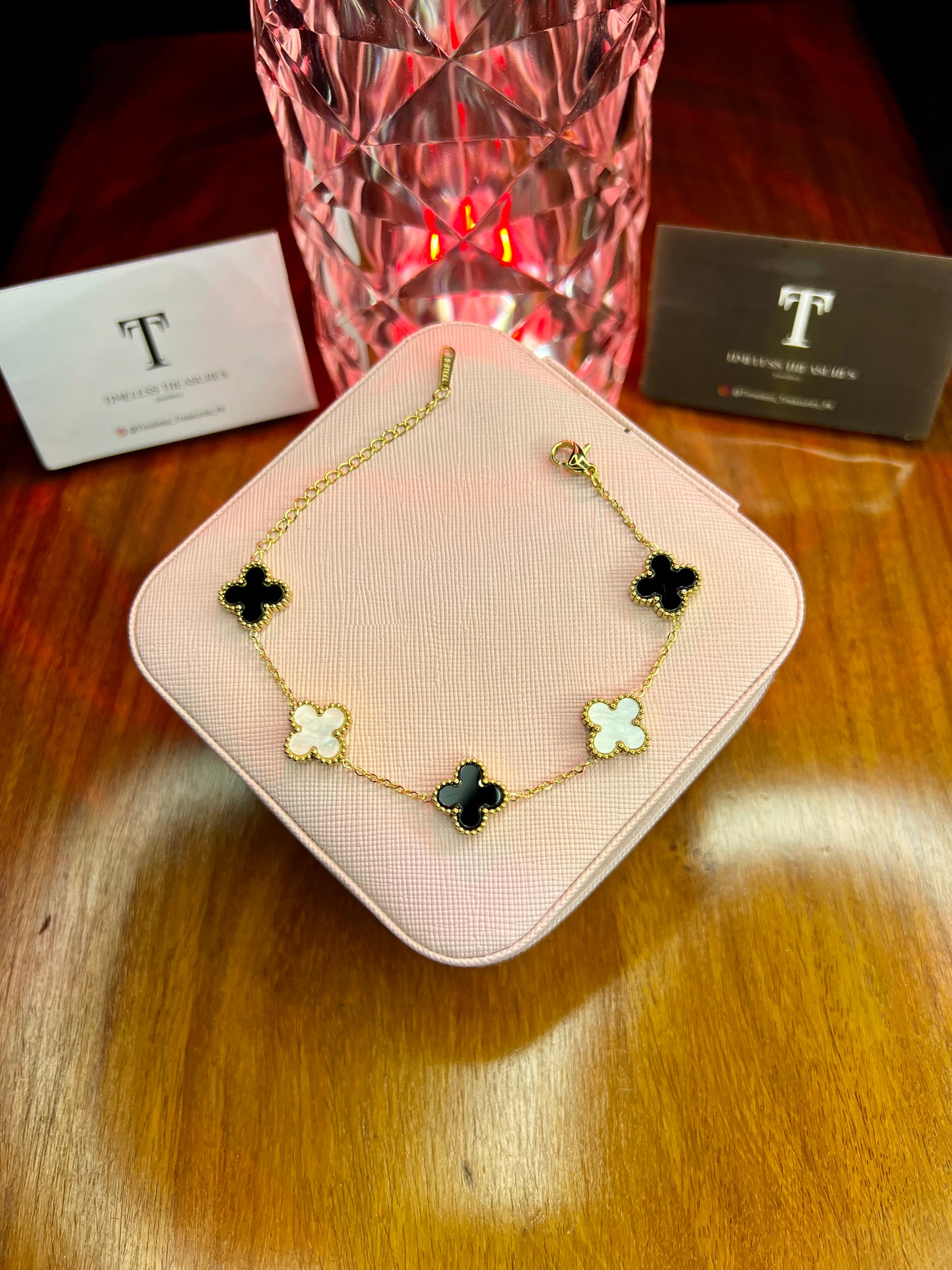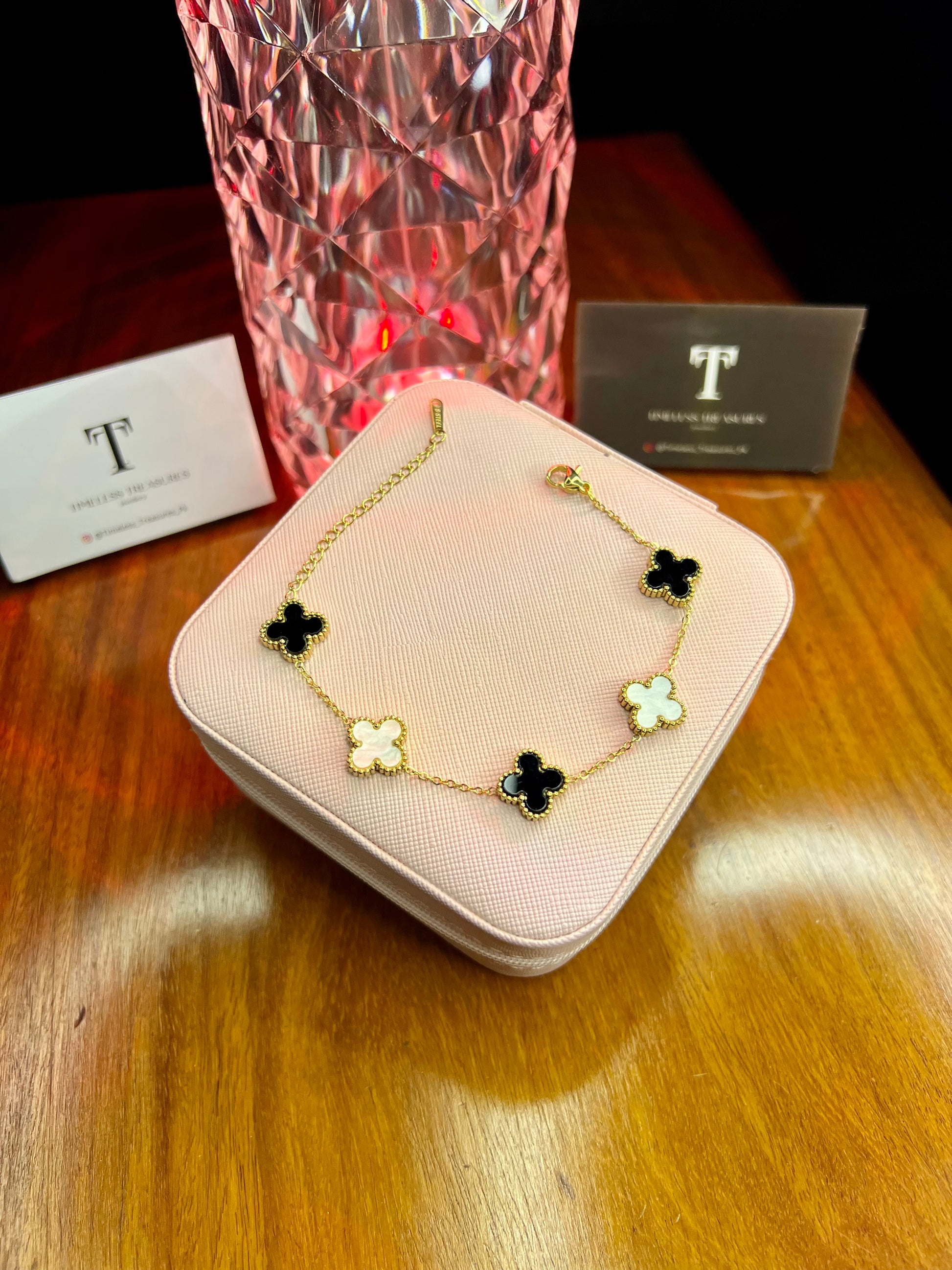 Premium Quality Stainless Steel 18k Double Side Black/White Clover Bracelet