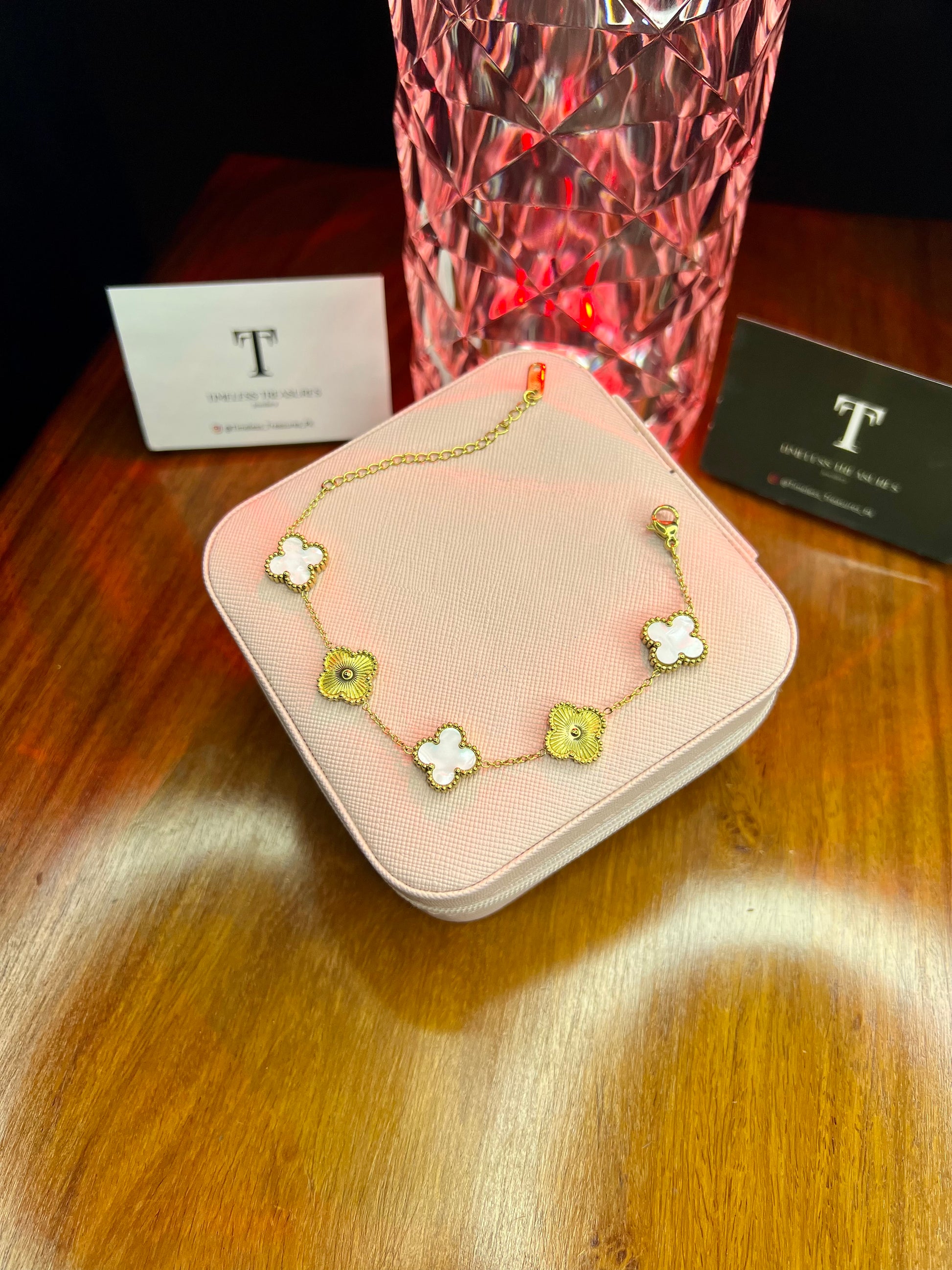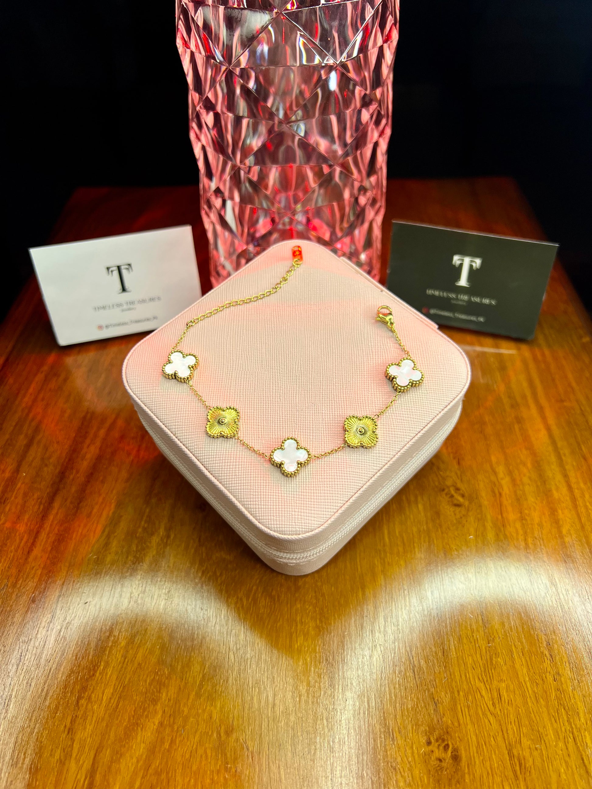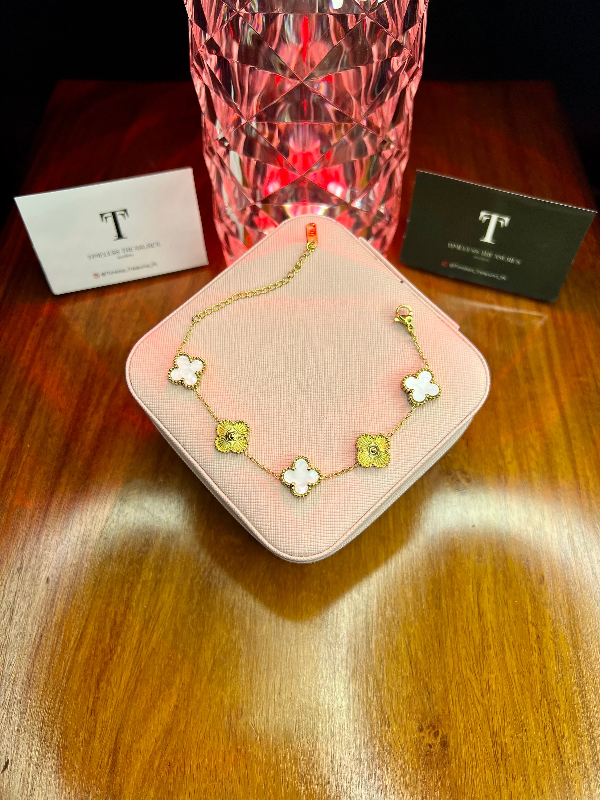 Premium Quality Stainless Steel 18k Gold and White Clover Bracelet