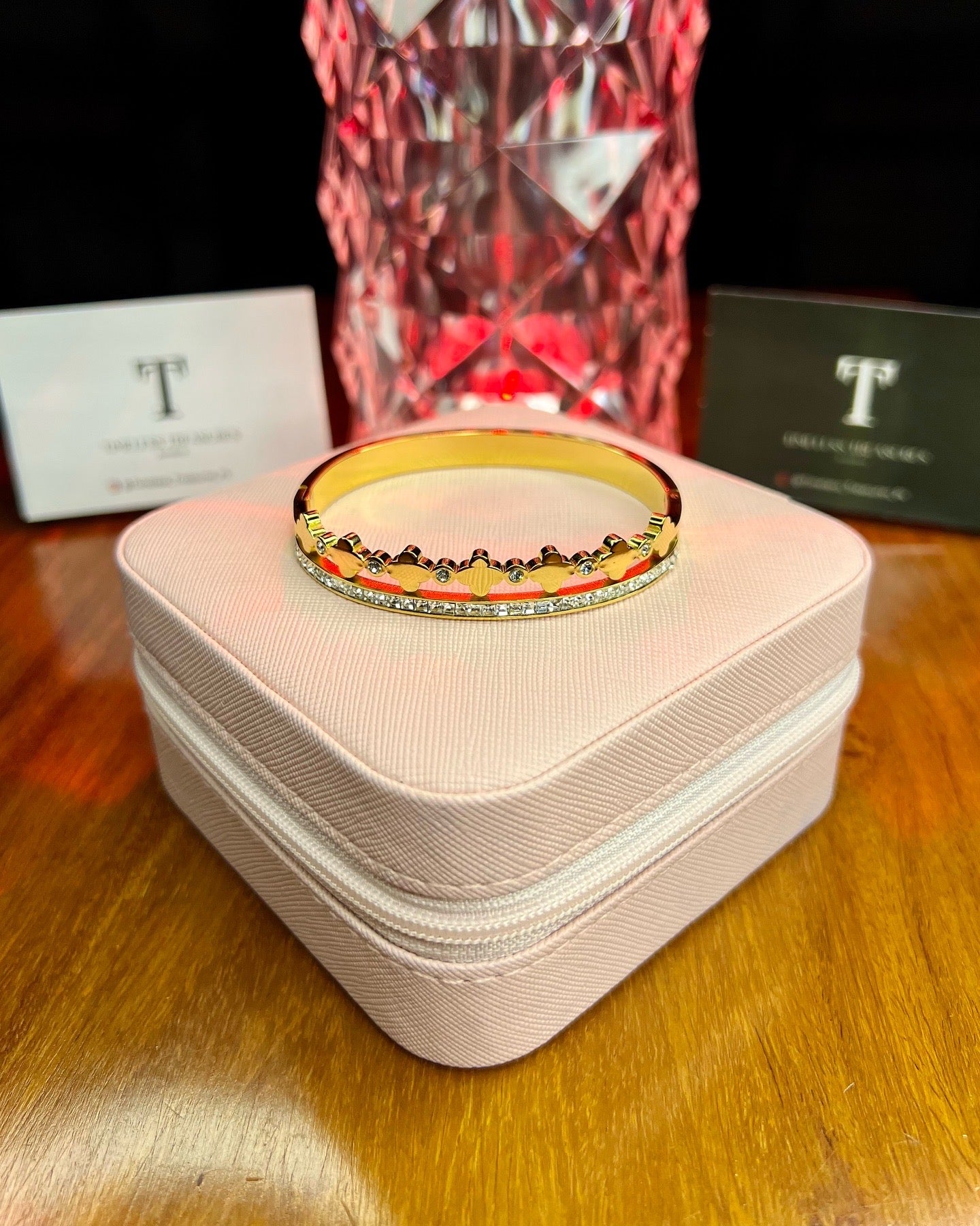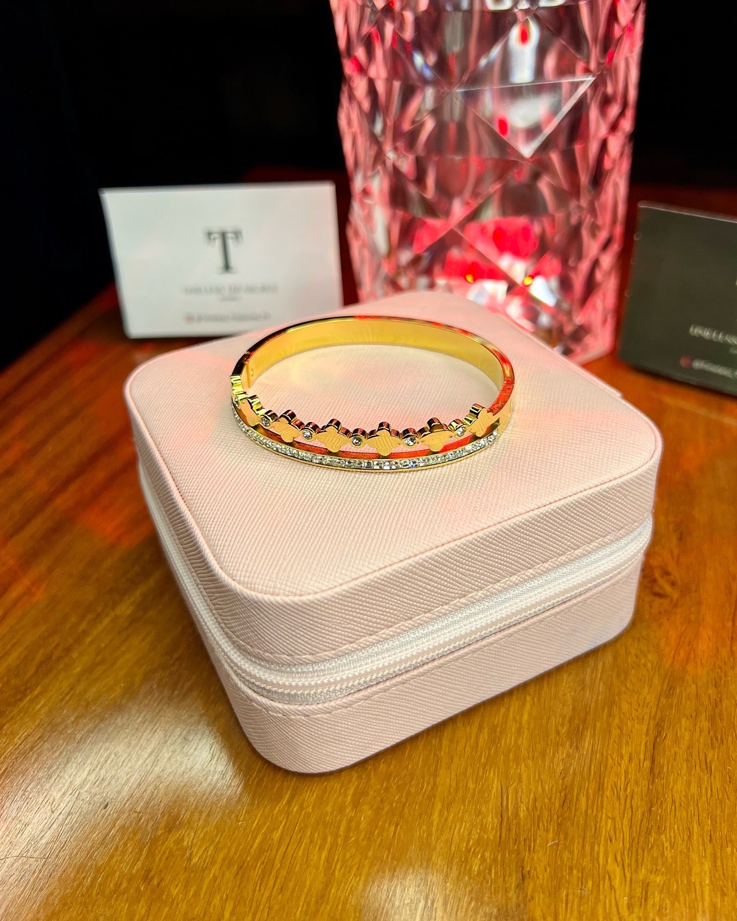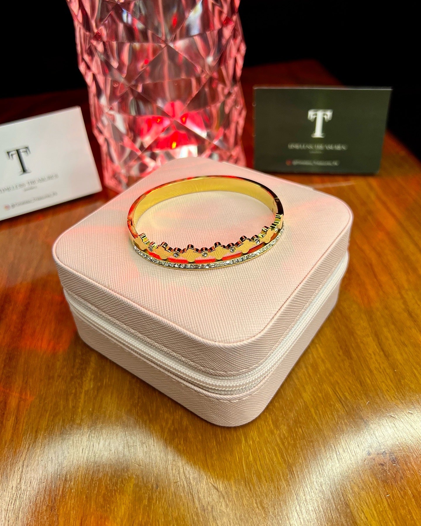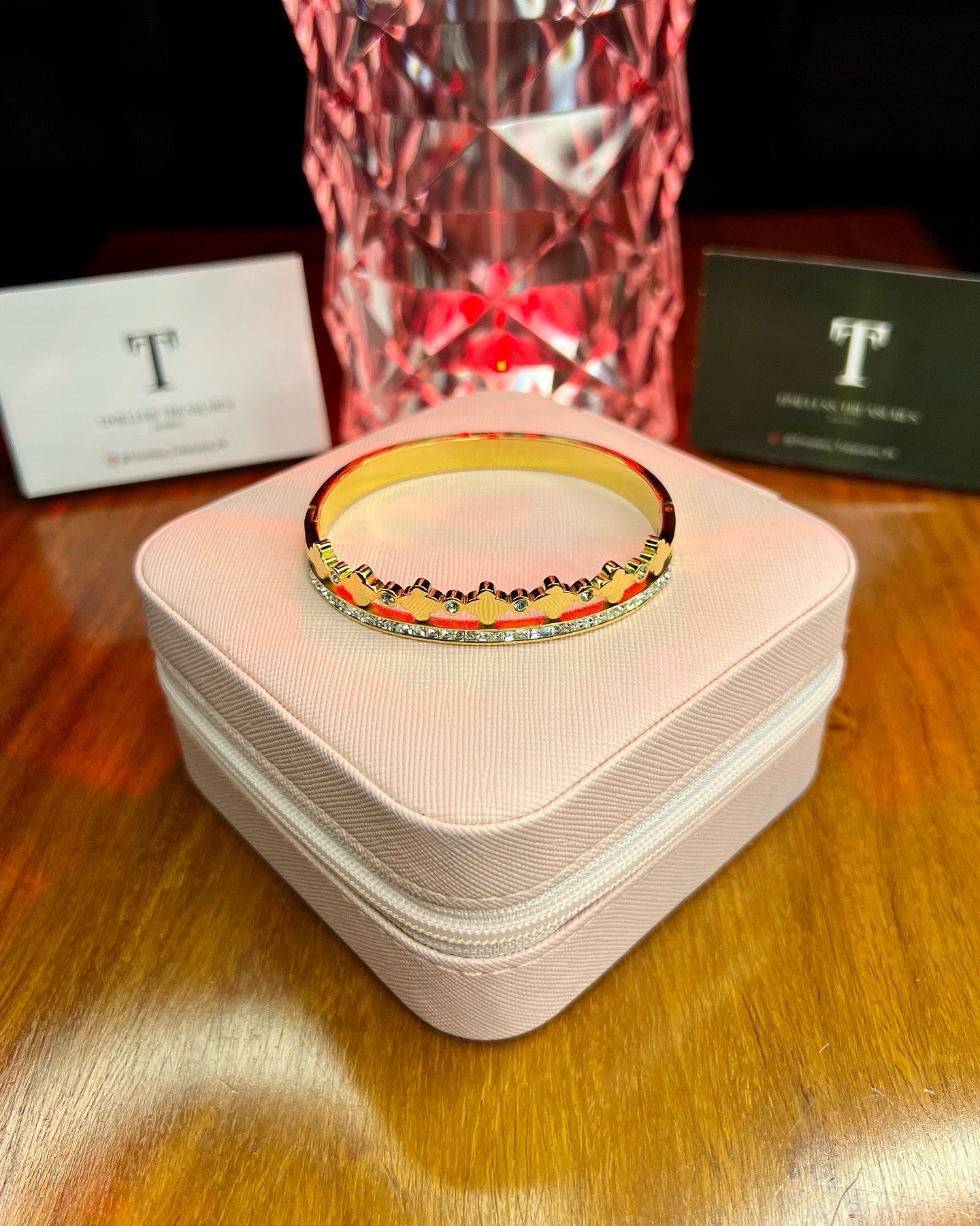Premium Quality Stainless Steel 18k Golden Clove Zircon Handcuff