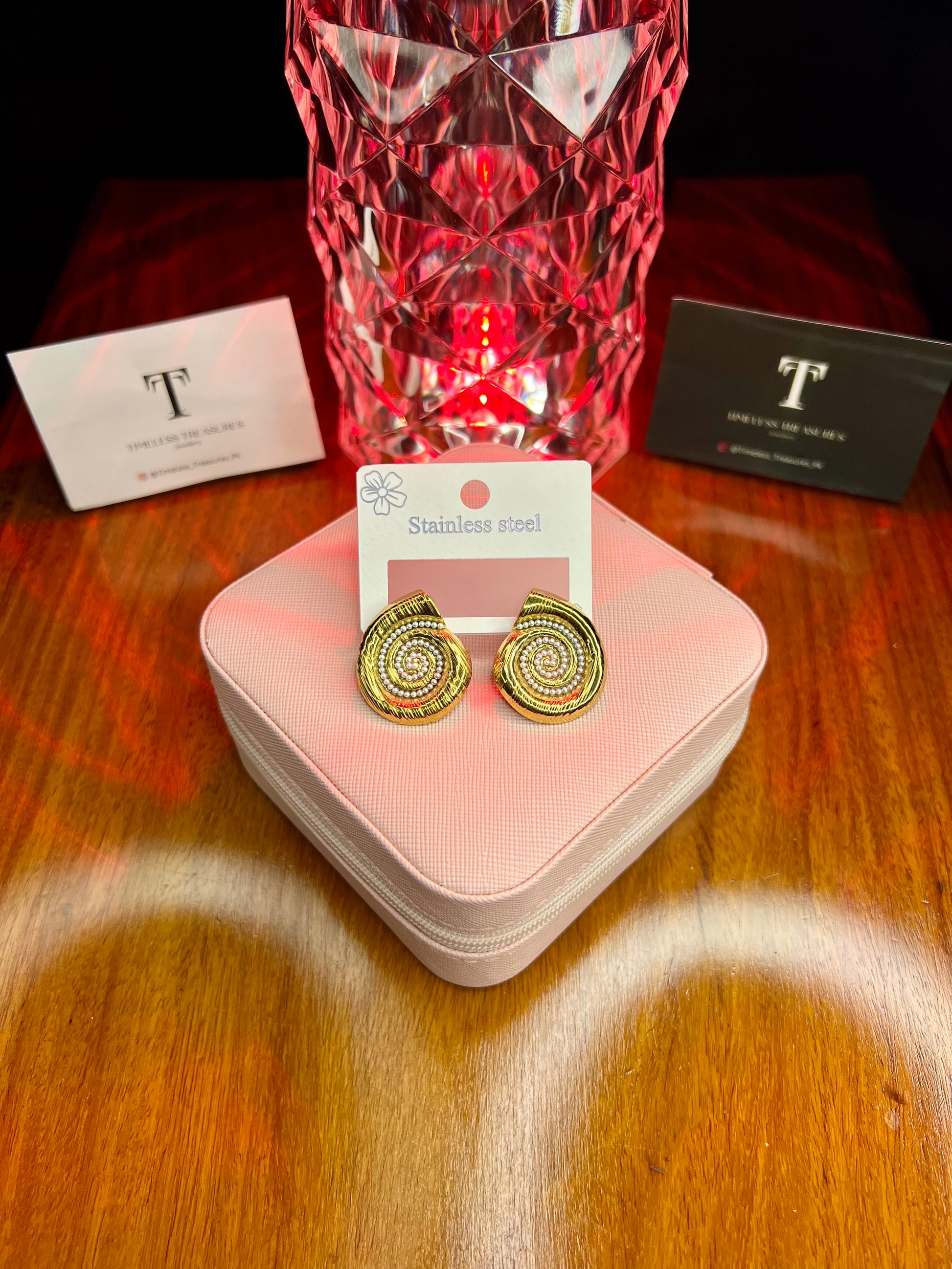 Premium Quality Stainless Steel 18k Golden Spiral Pearl Studs