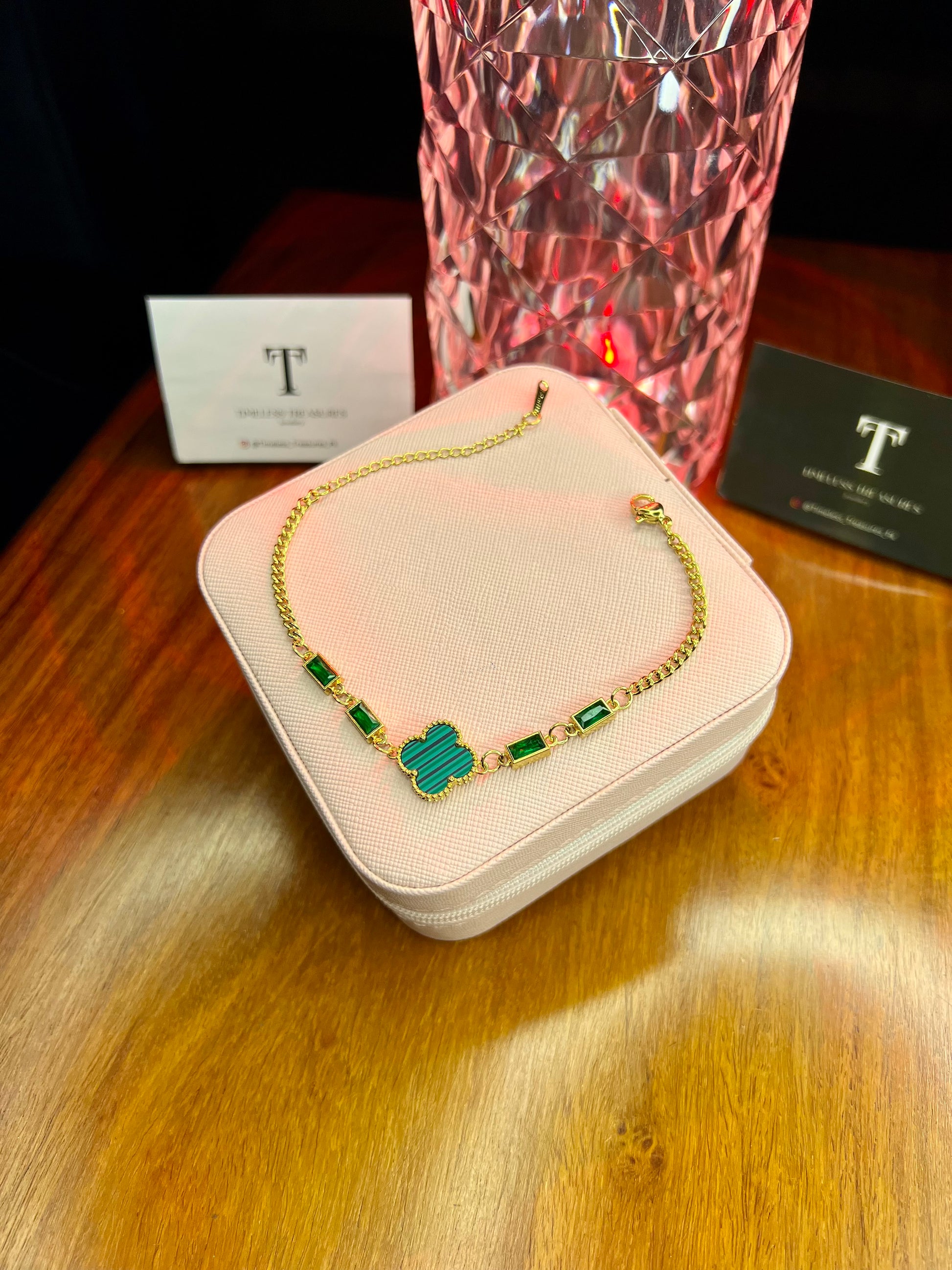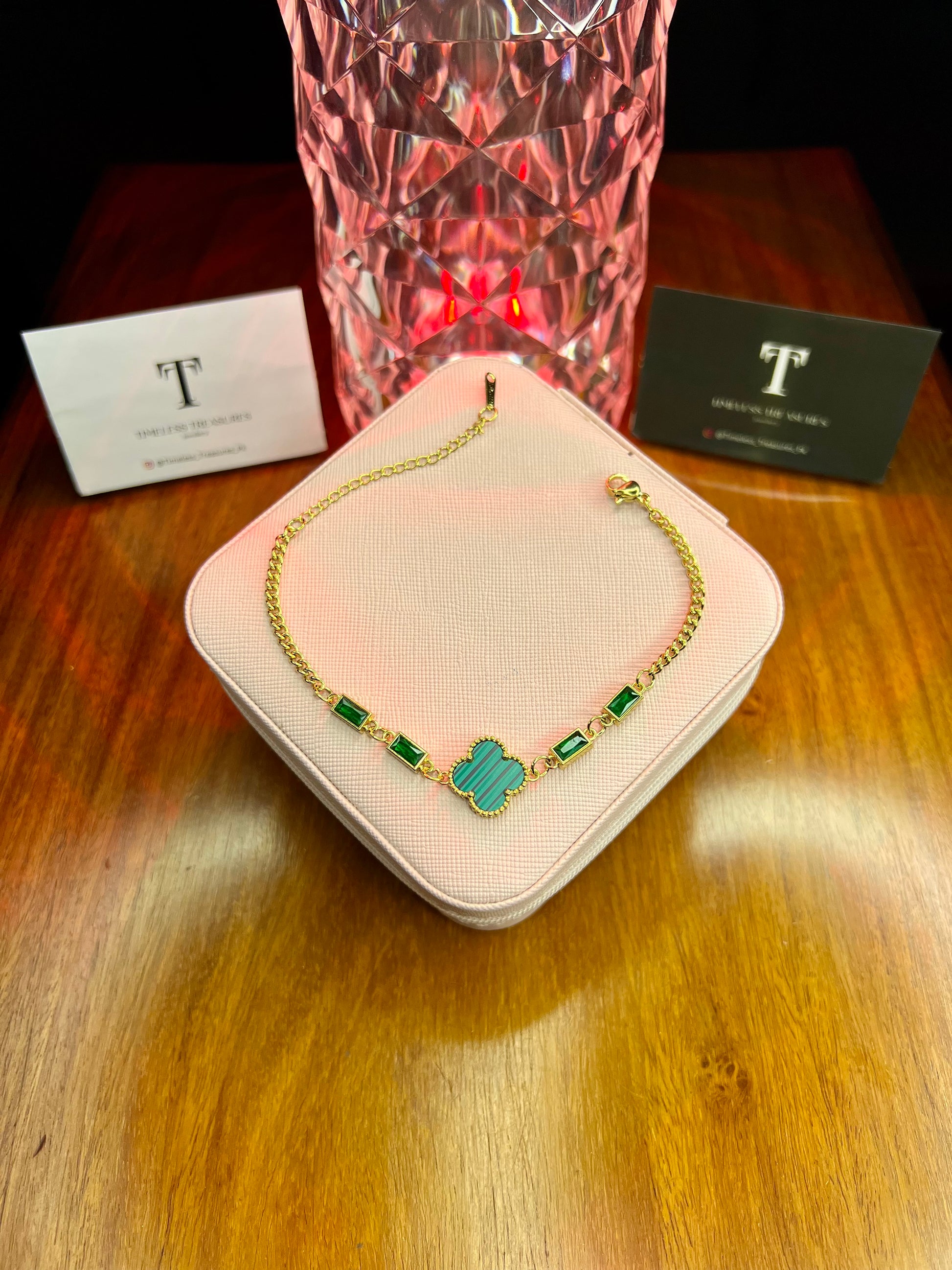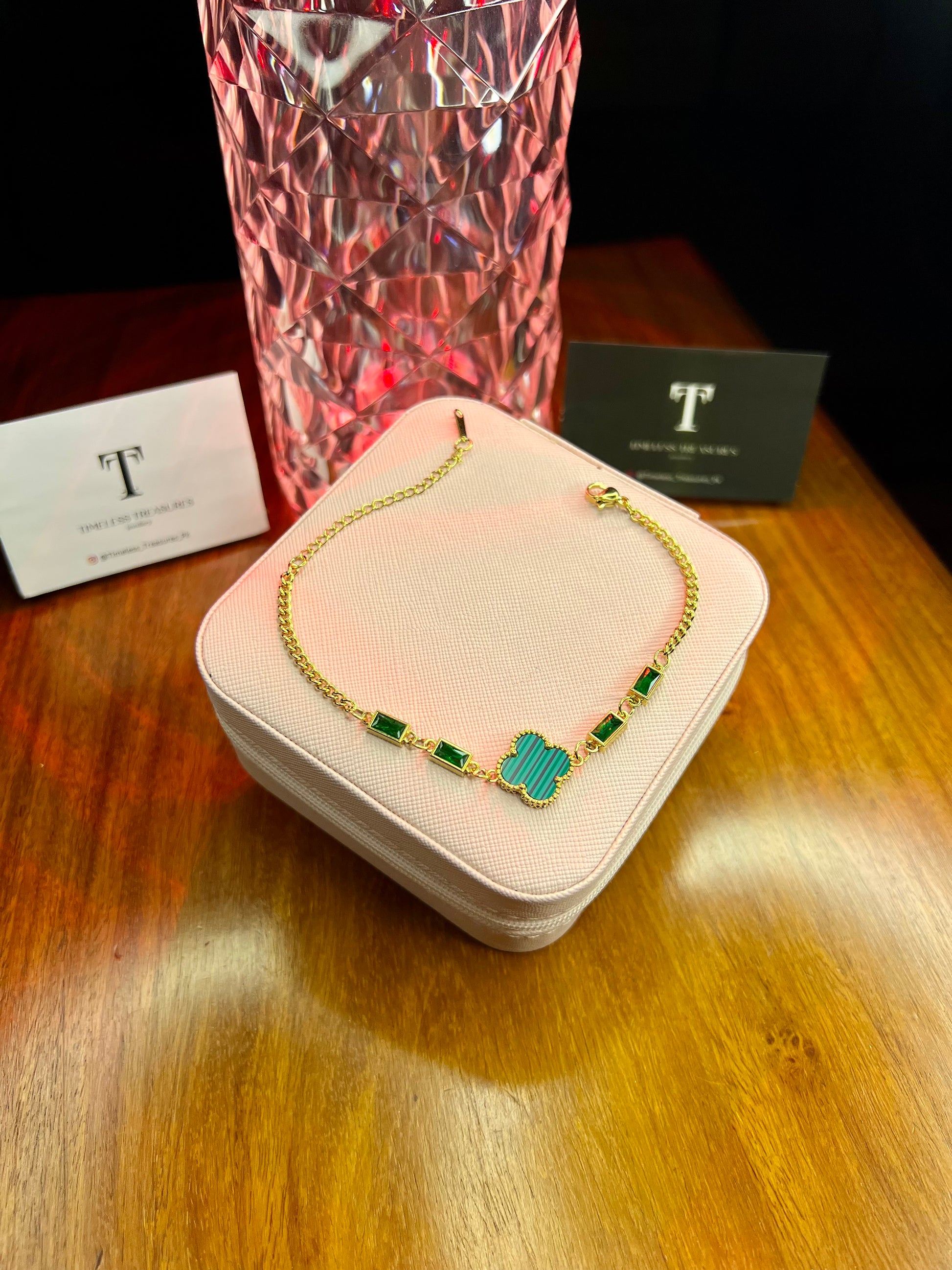 Premium Quality Stainless Steel 18k Green Clover Stone Bracelet