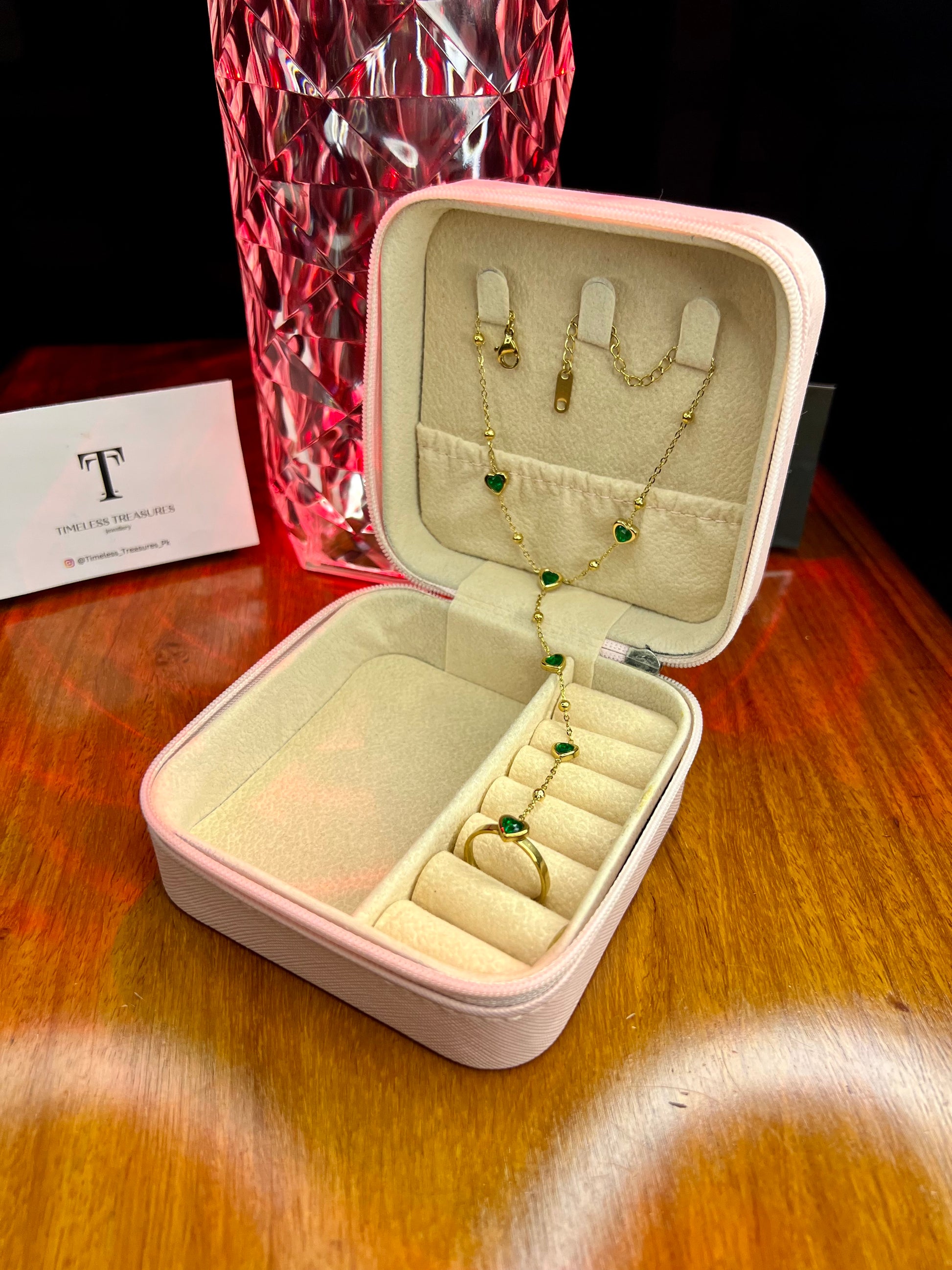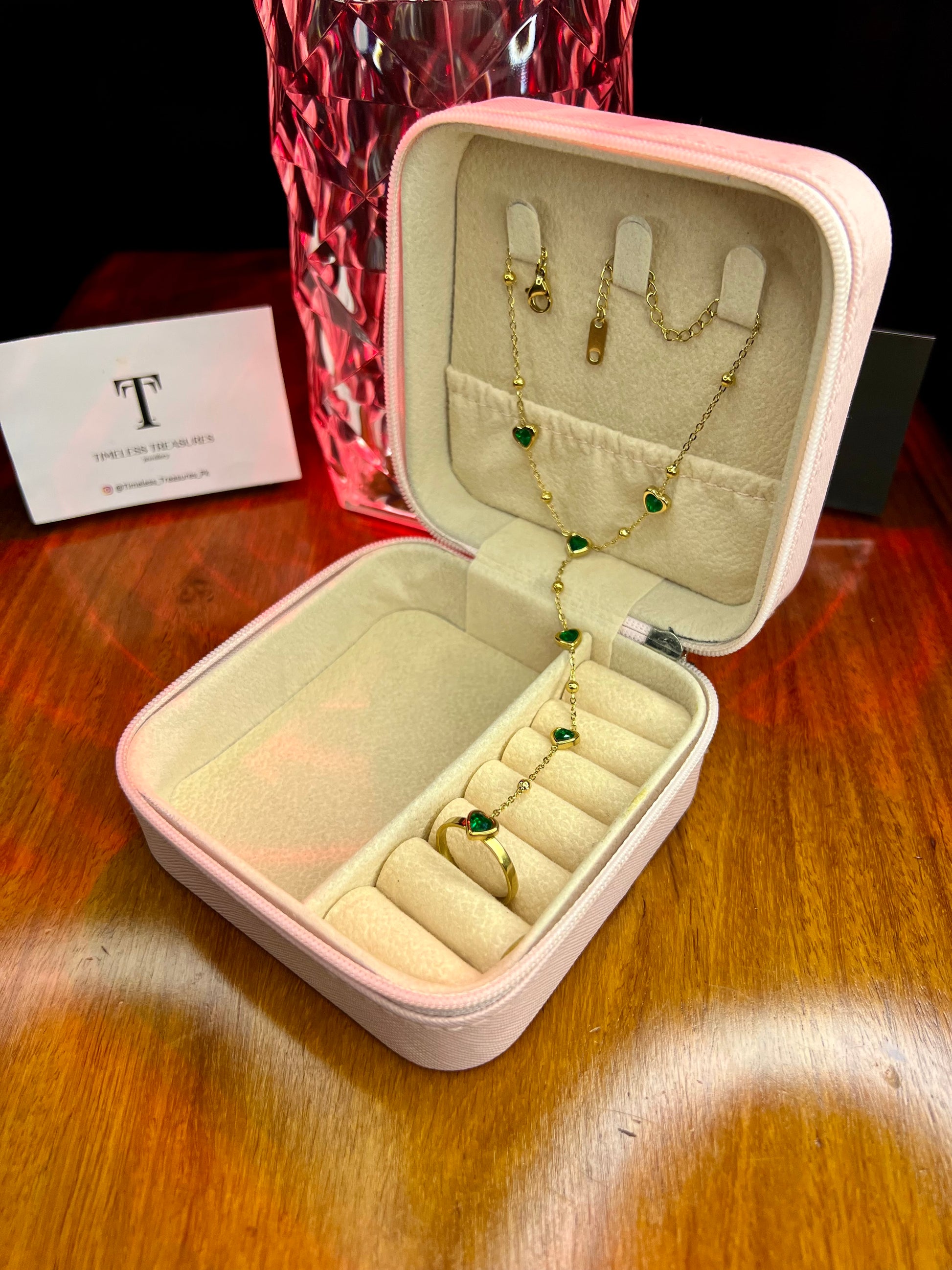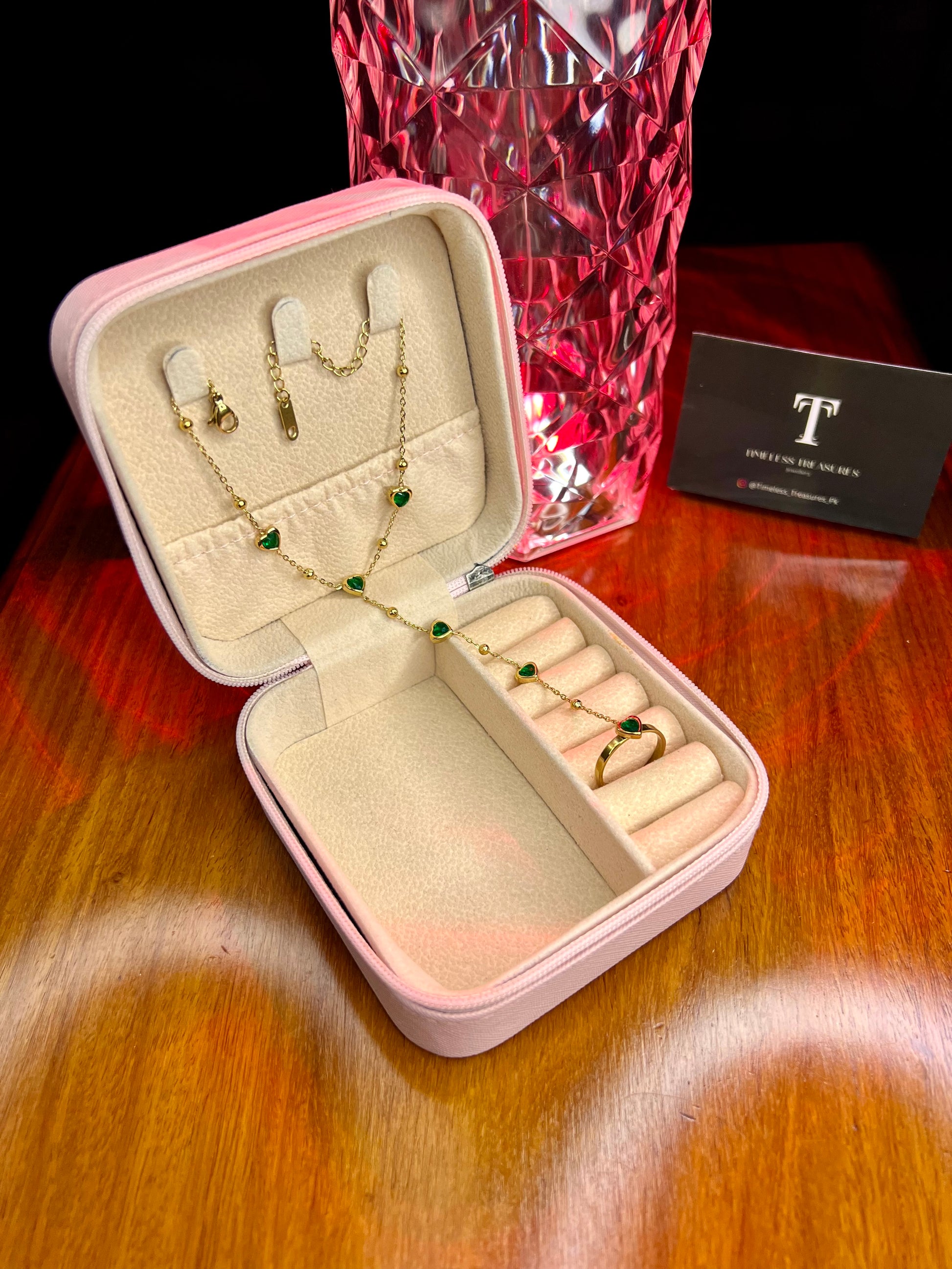 Premium Quality Stainless Steel 18k Green Stone Heart Handchain