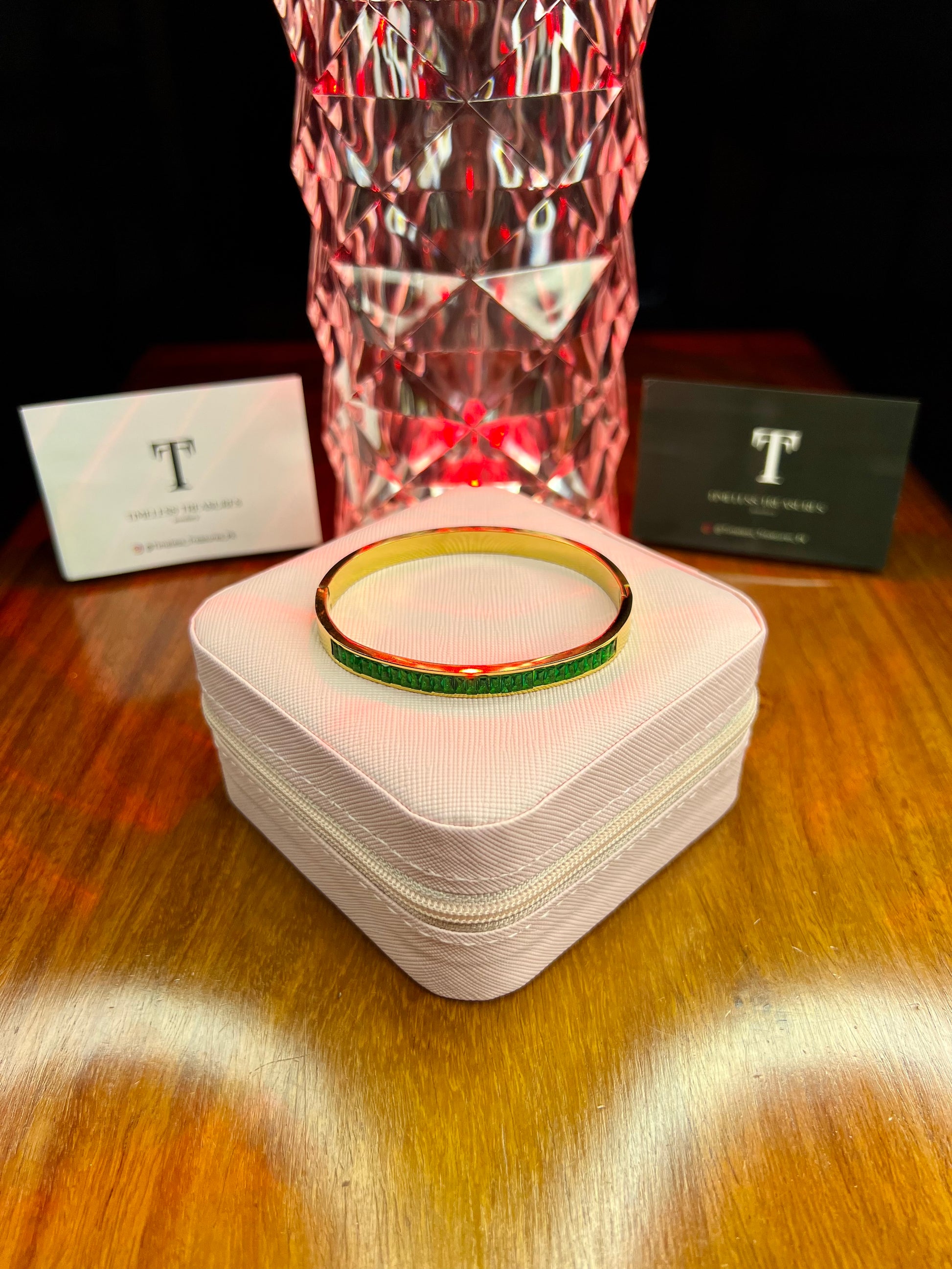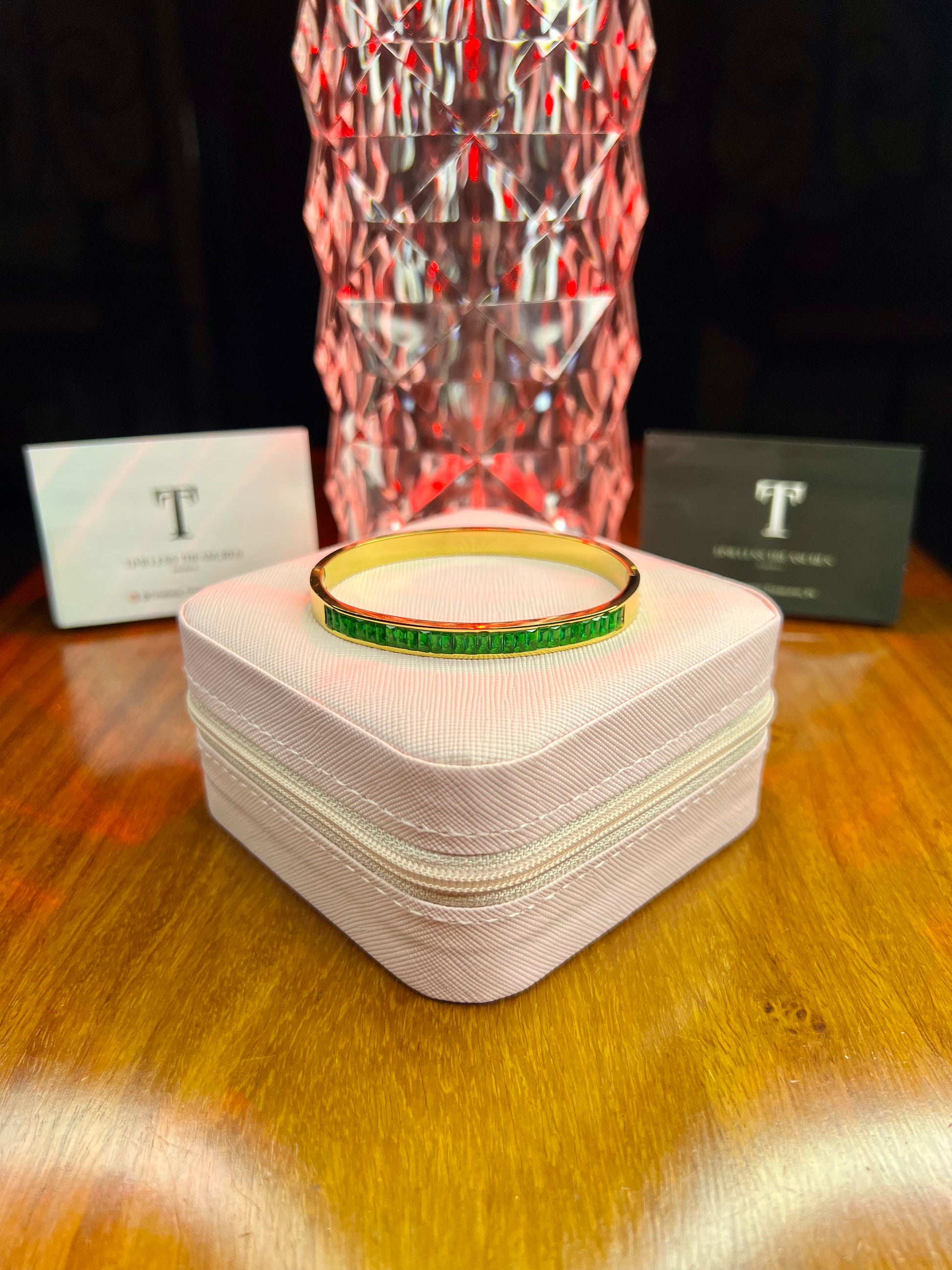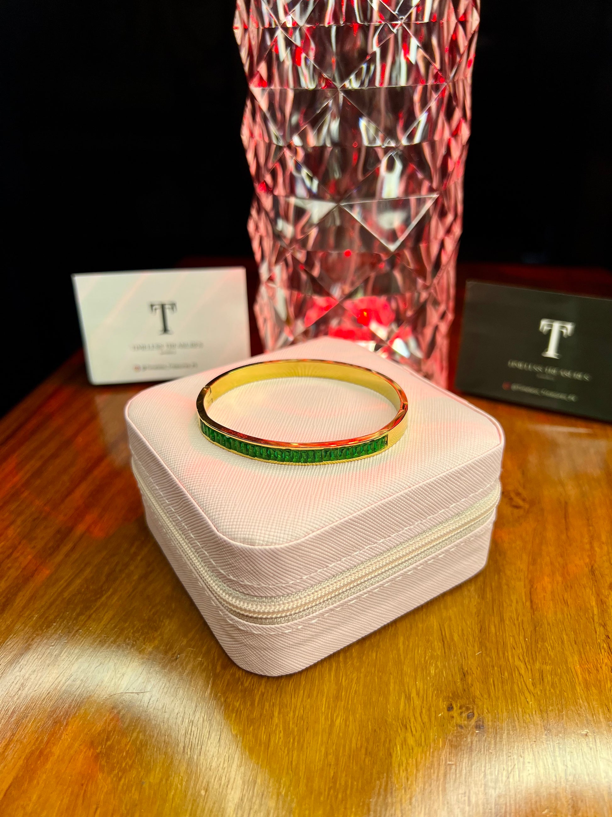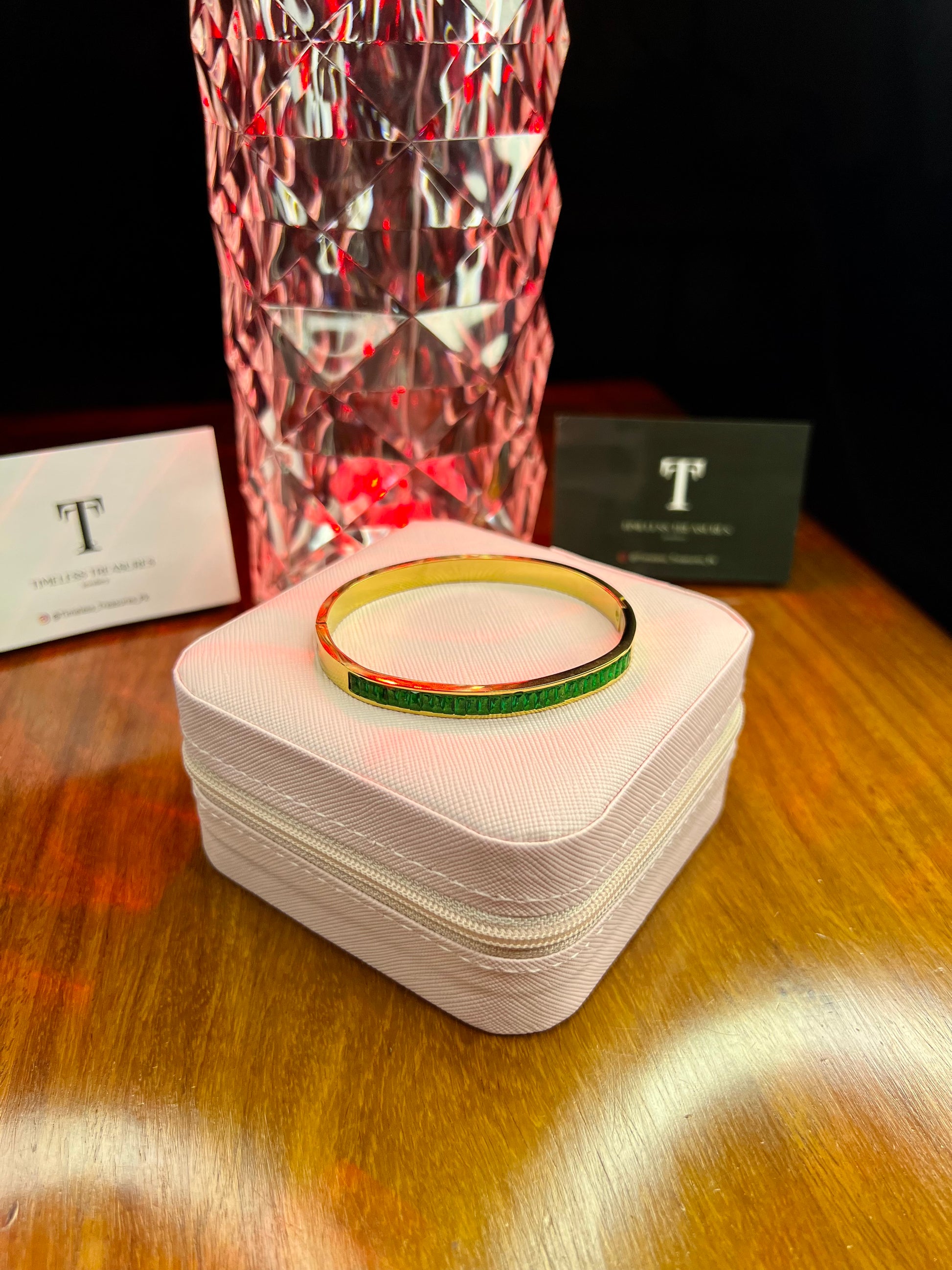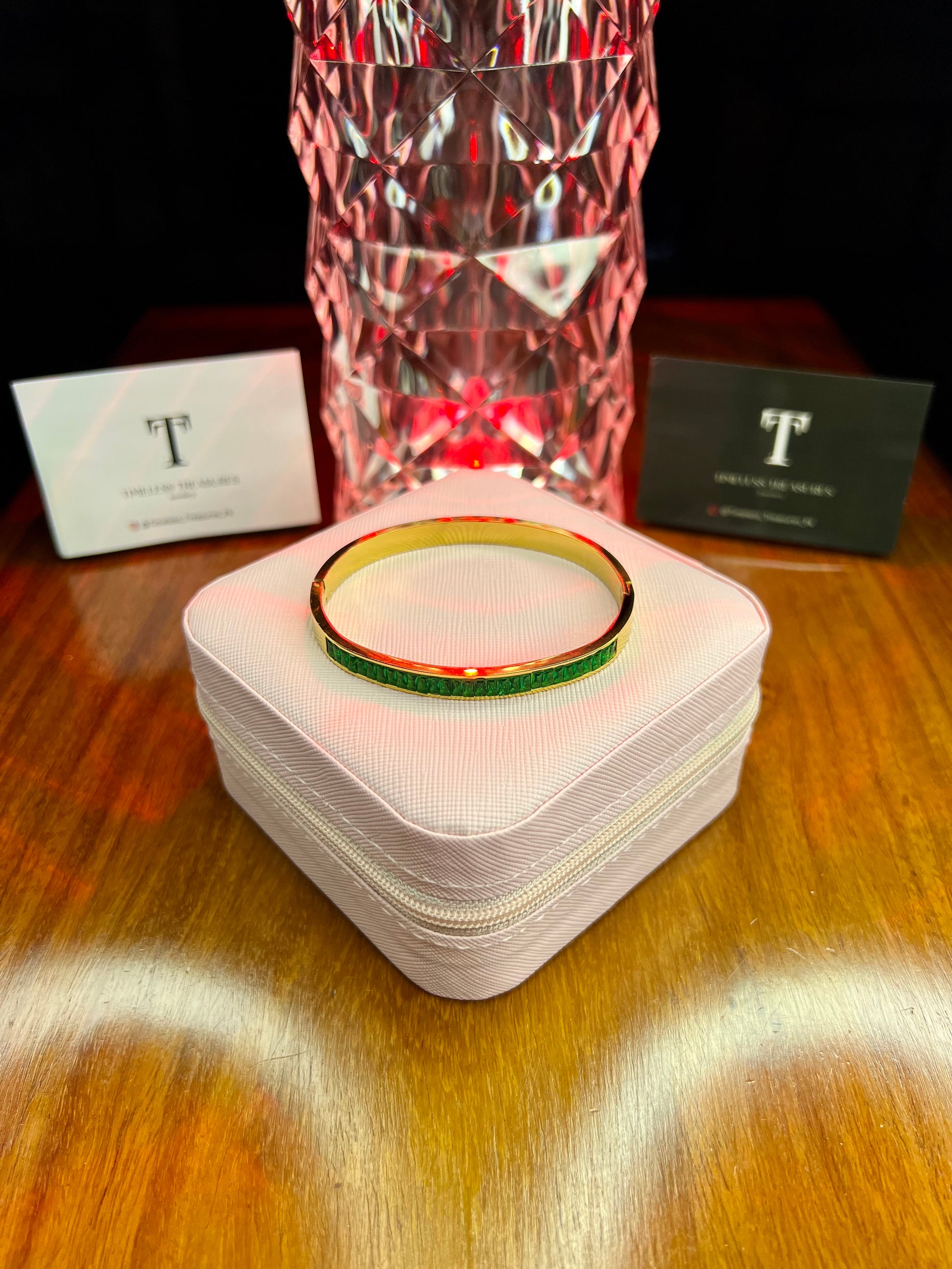 Premium Quality Stainless Steel 18k Green Stone Luxury Handcuff