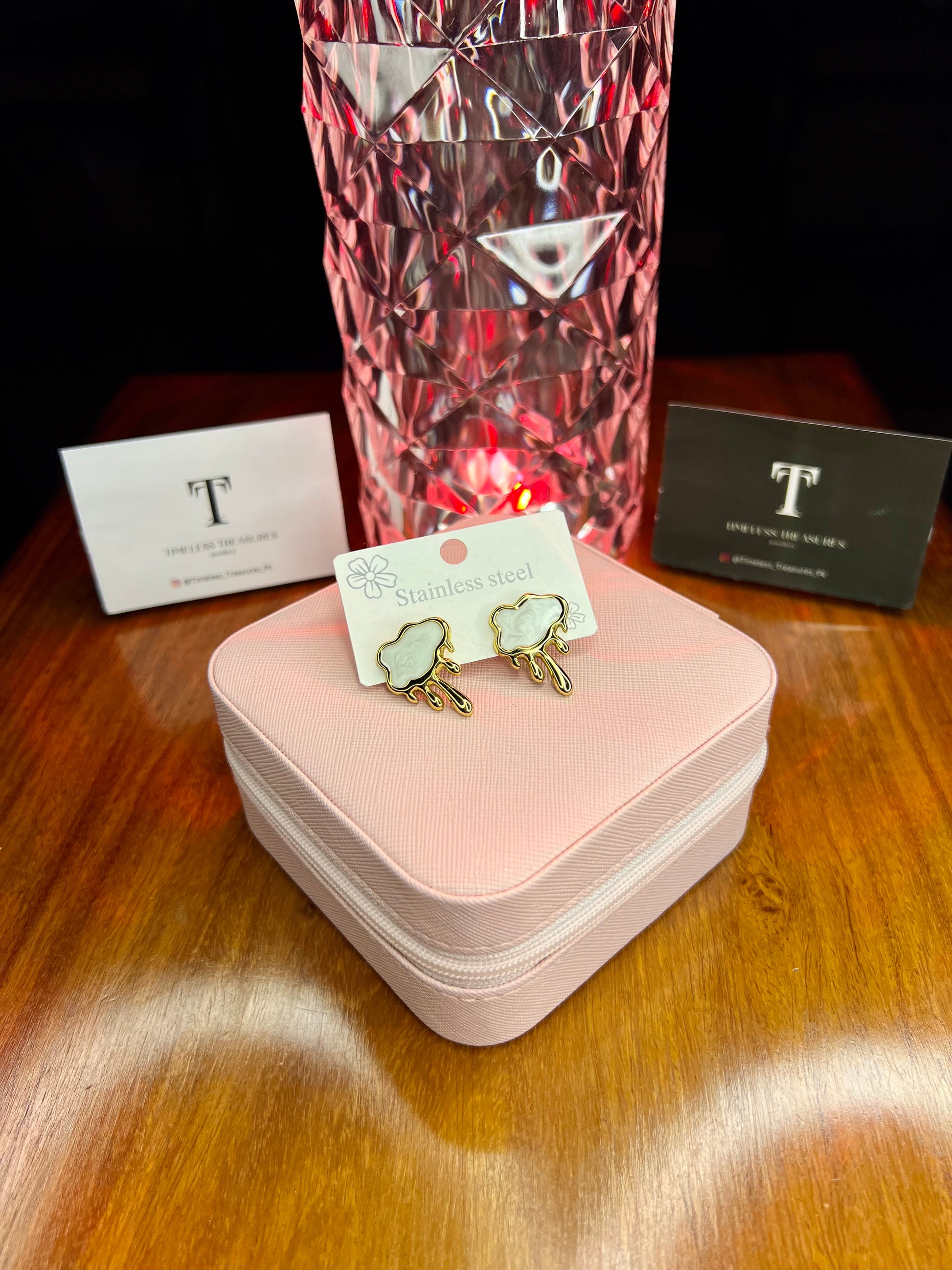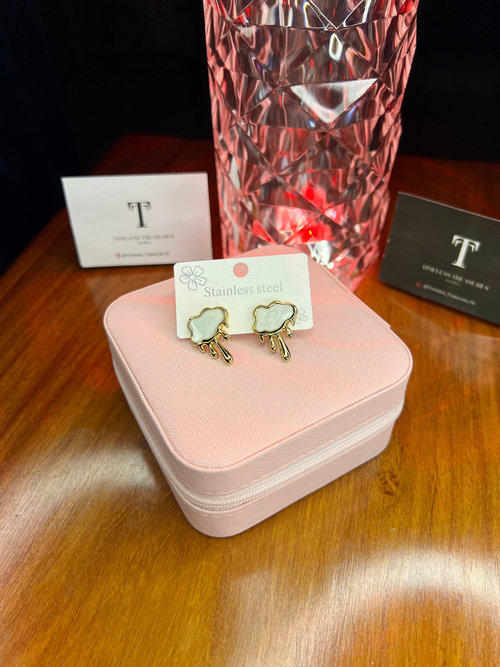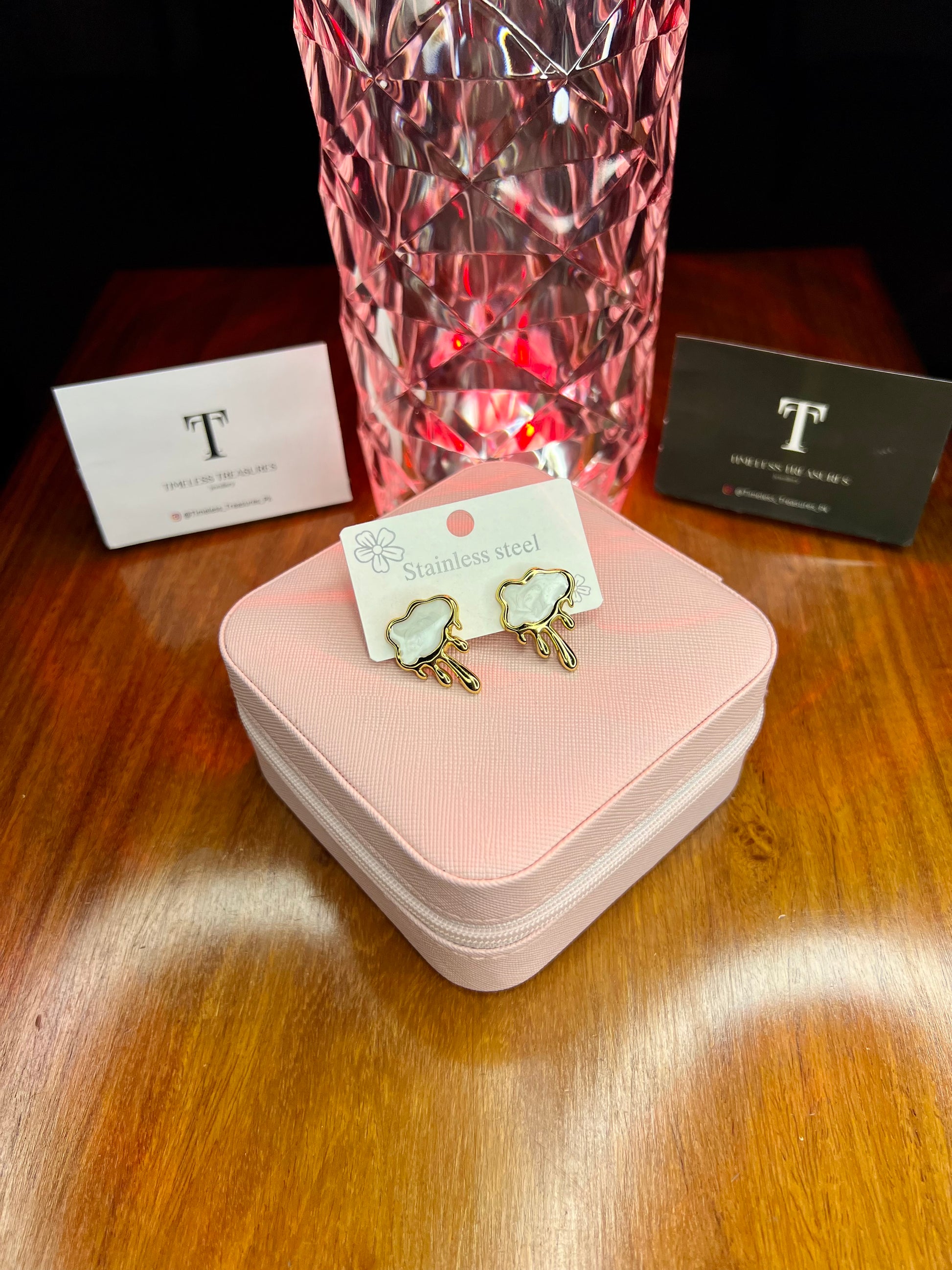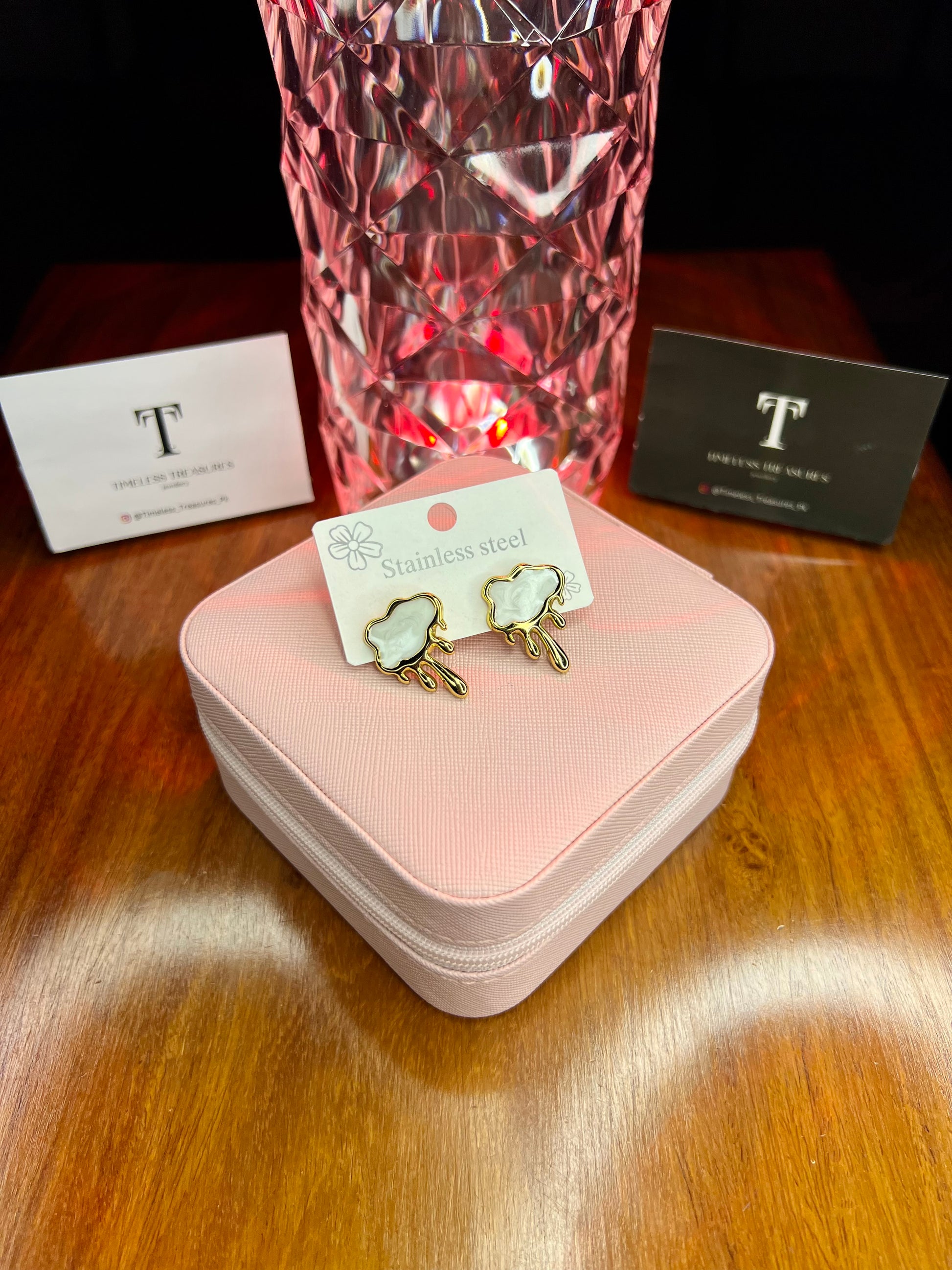 Premium Quality Stainless Steel 18k Luxury White Enamel Earrings