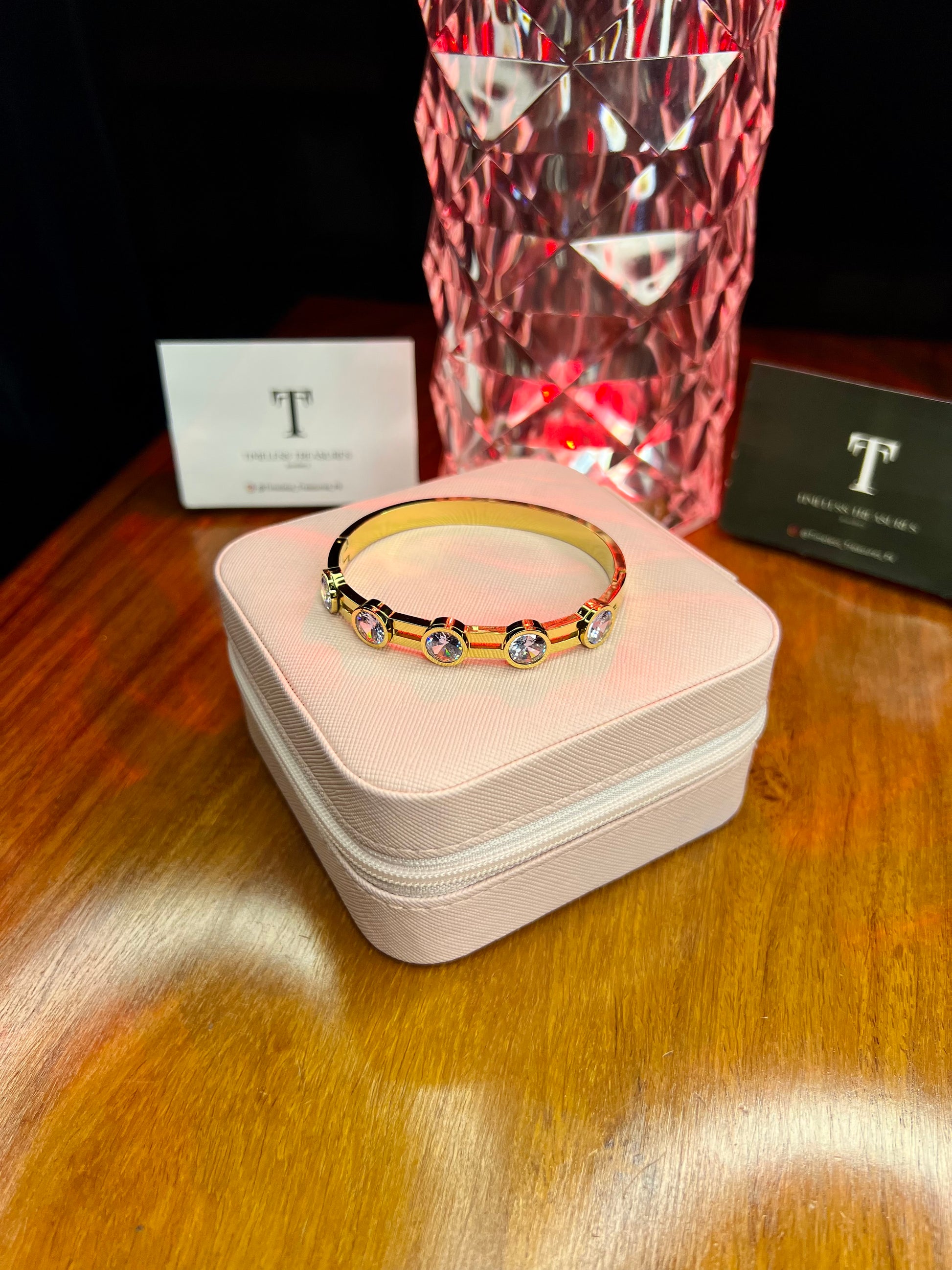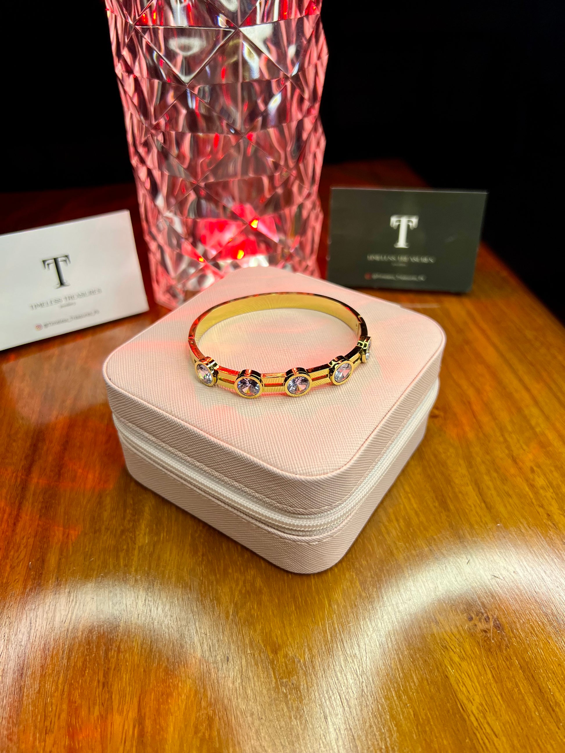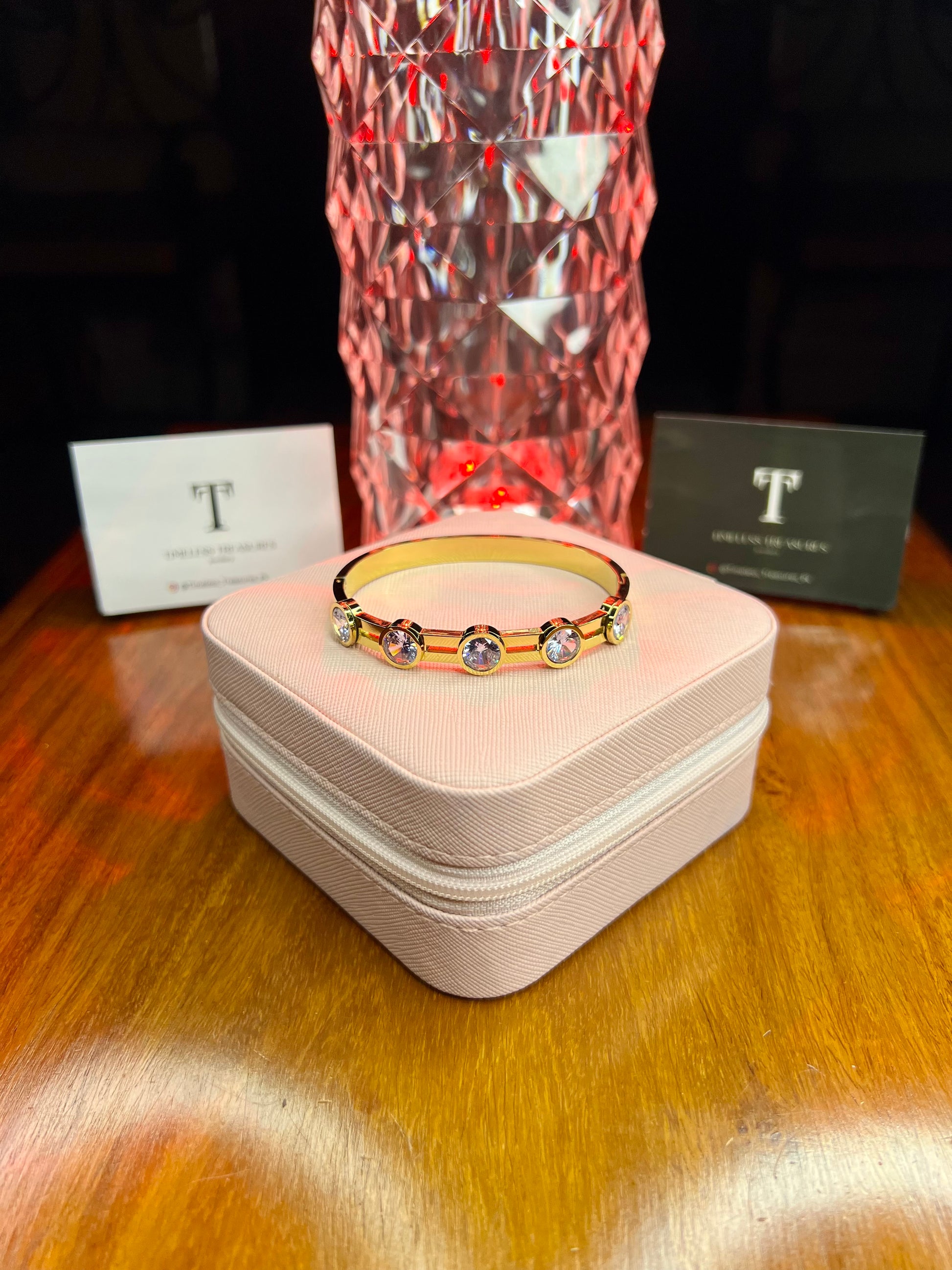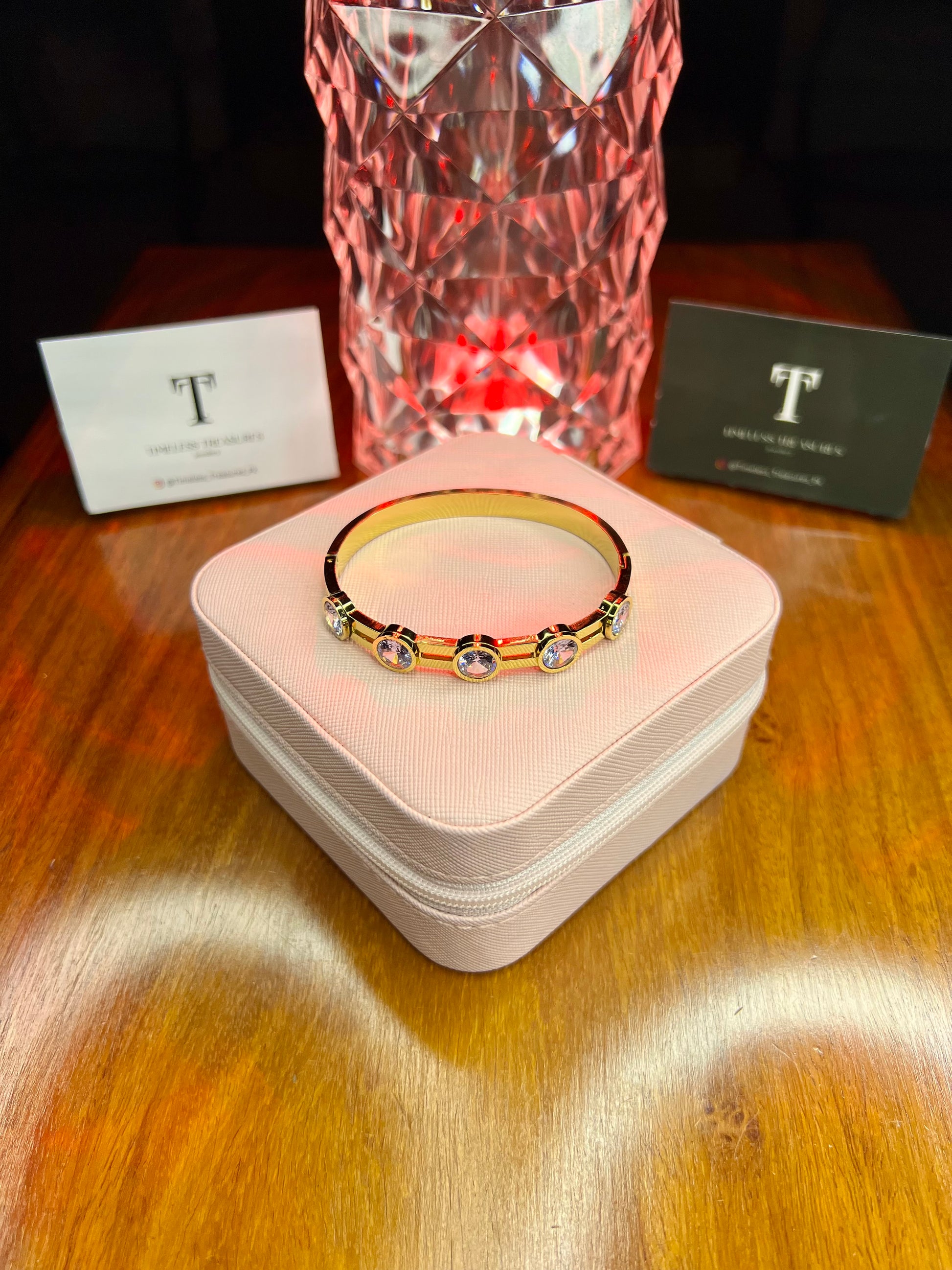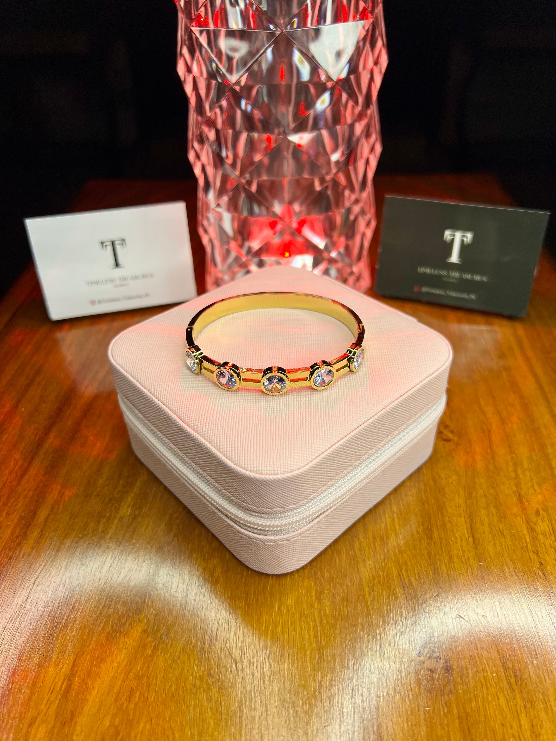 Premium Quality Stainless Steel 18k Multi Stones Gold Handcuff