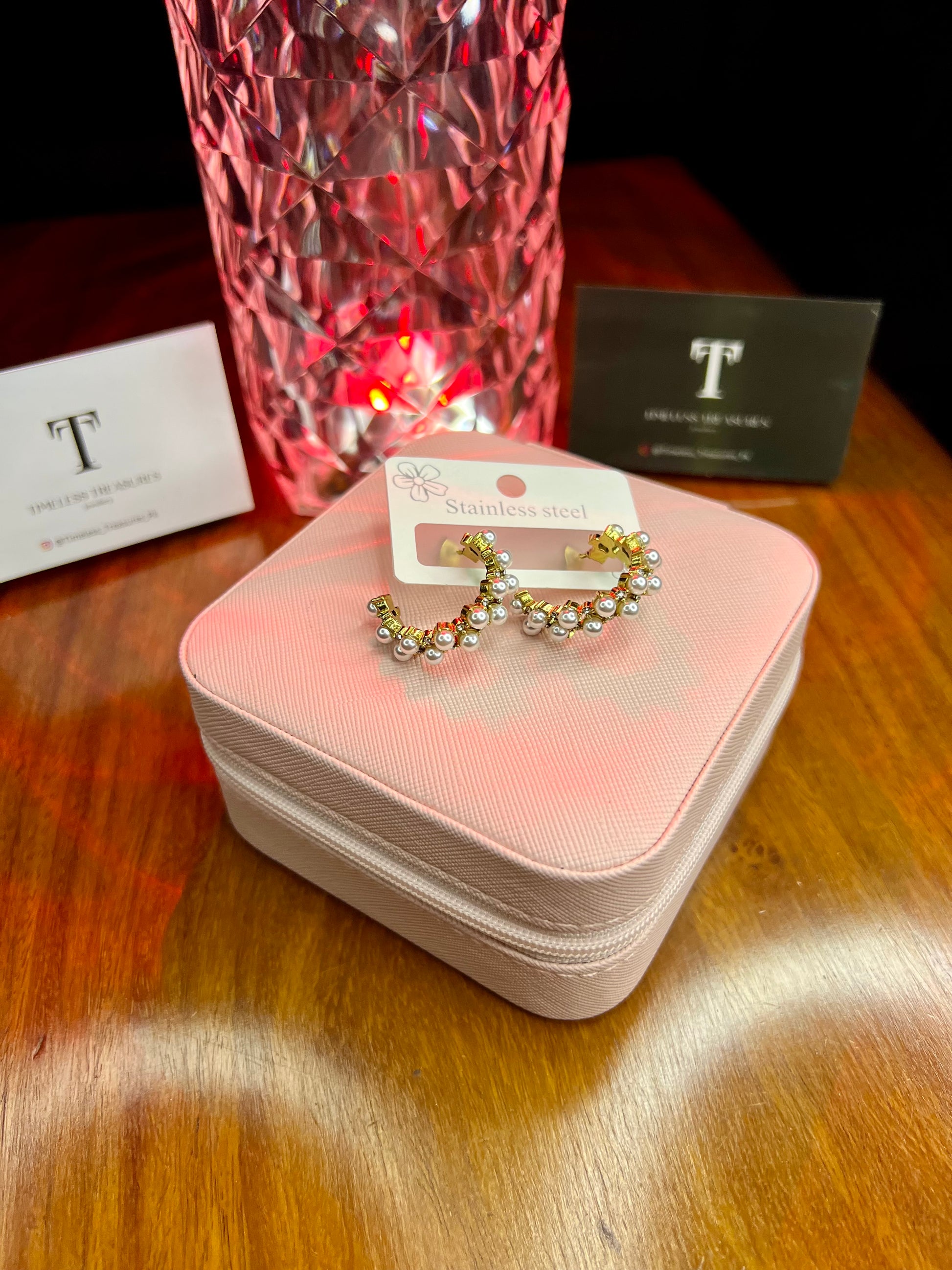 Premium Quality Stainless Steel 18k Pearl C Shape Earrings