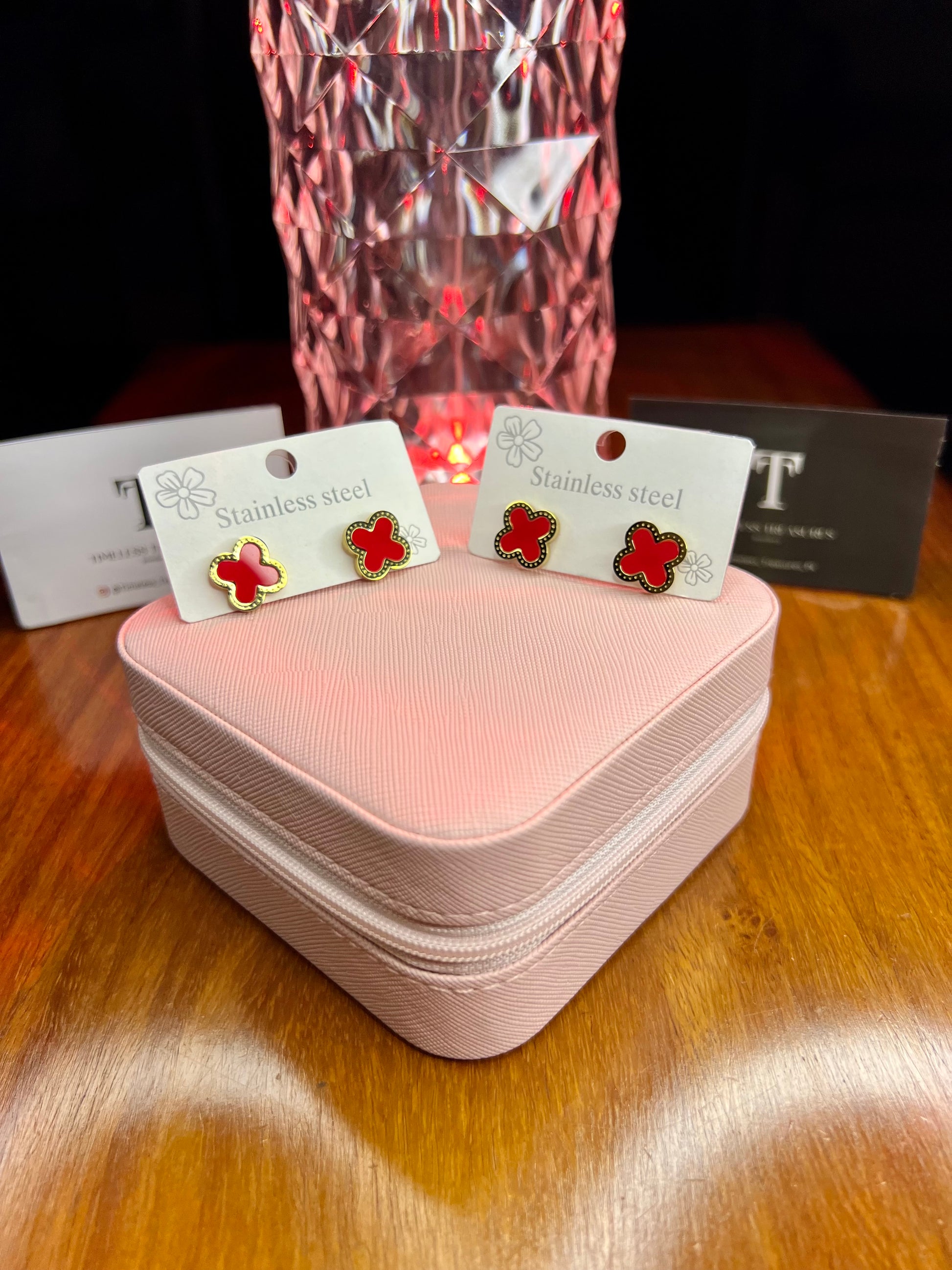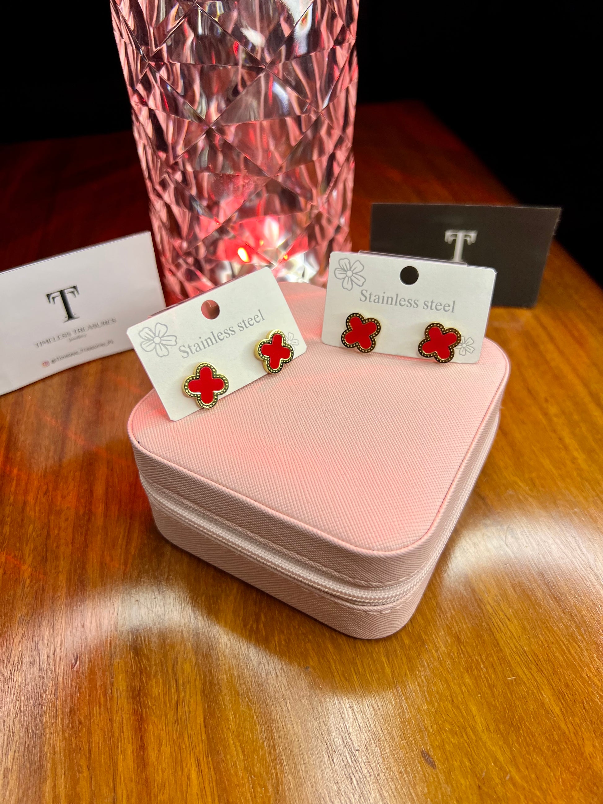 Premium Quality Stainless Steel 18k Red Clover EarStuds