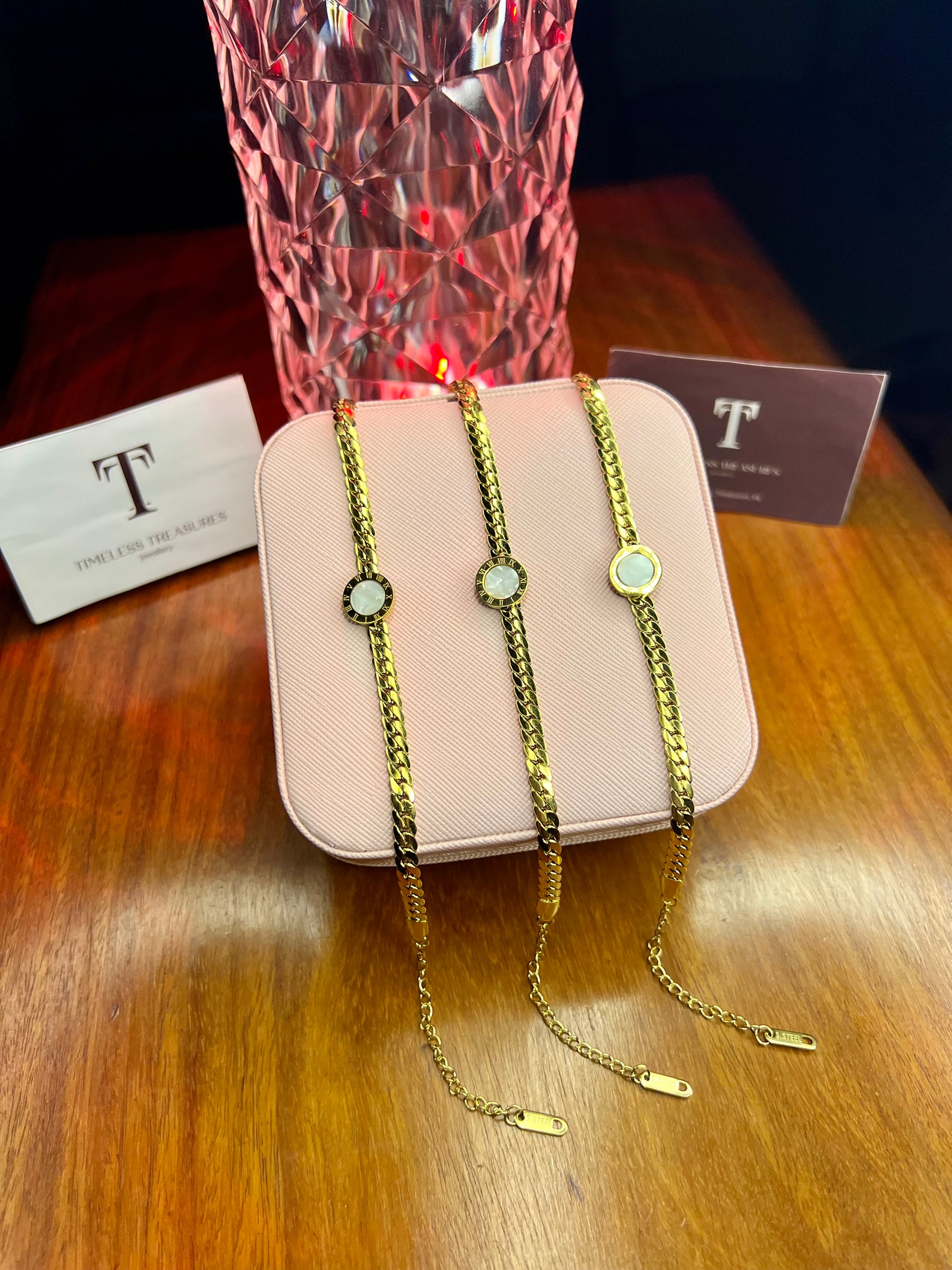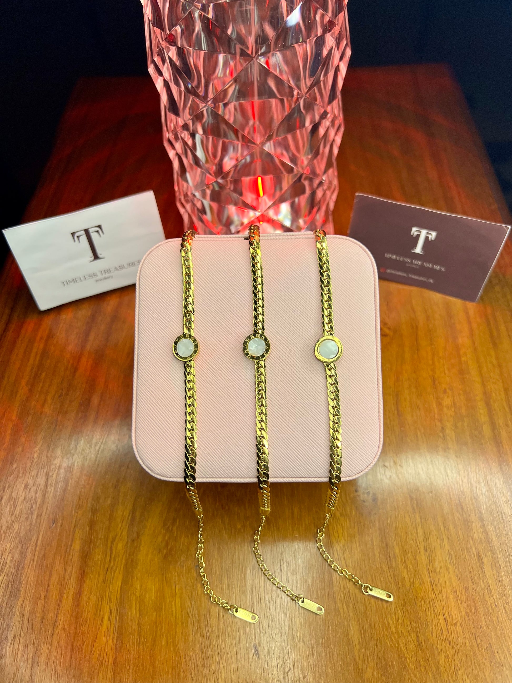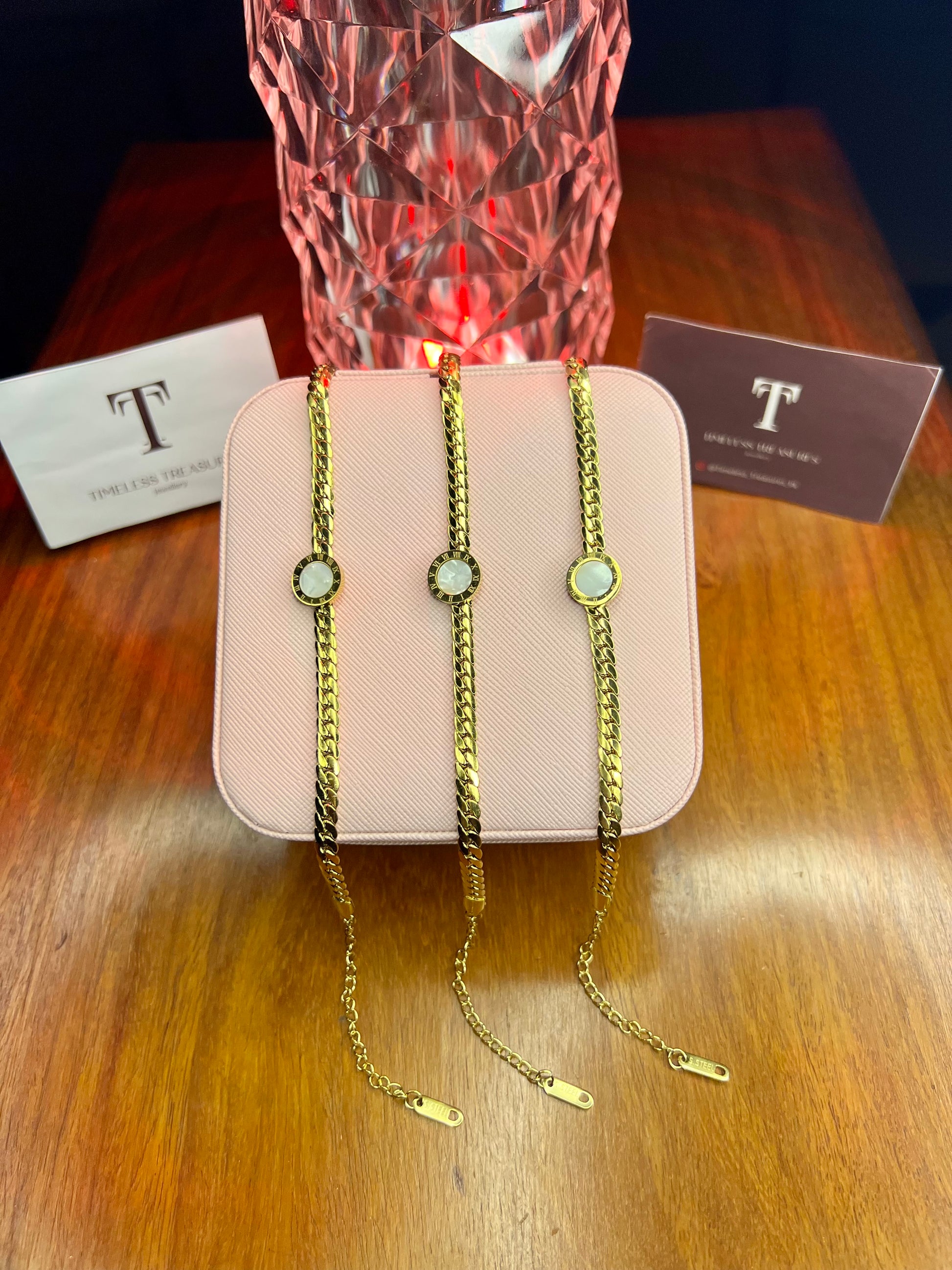 Premium Quality Stainless Steel 18k Roman White Enamel Chain Bracelet