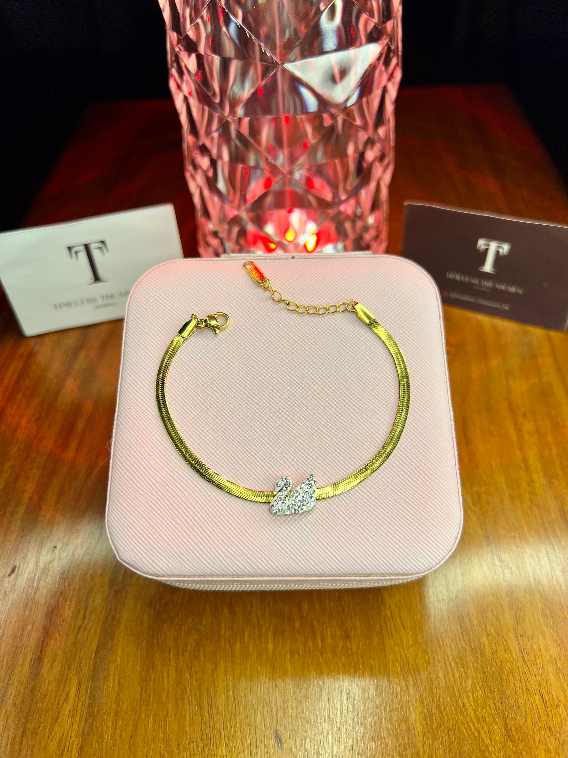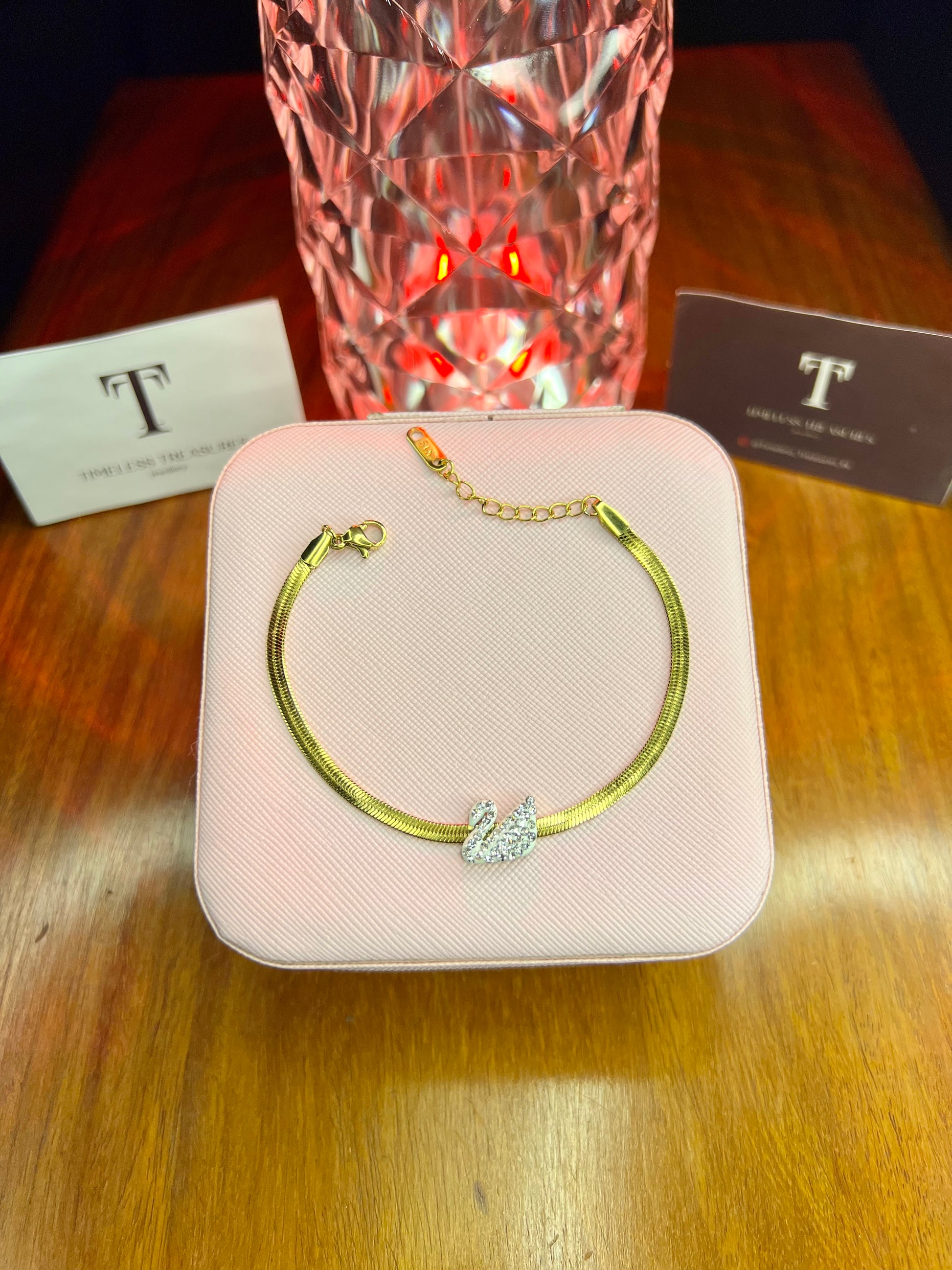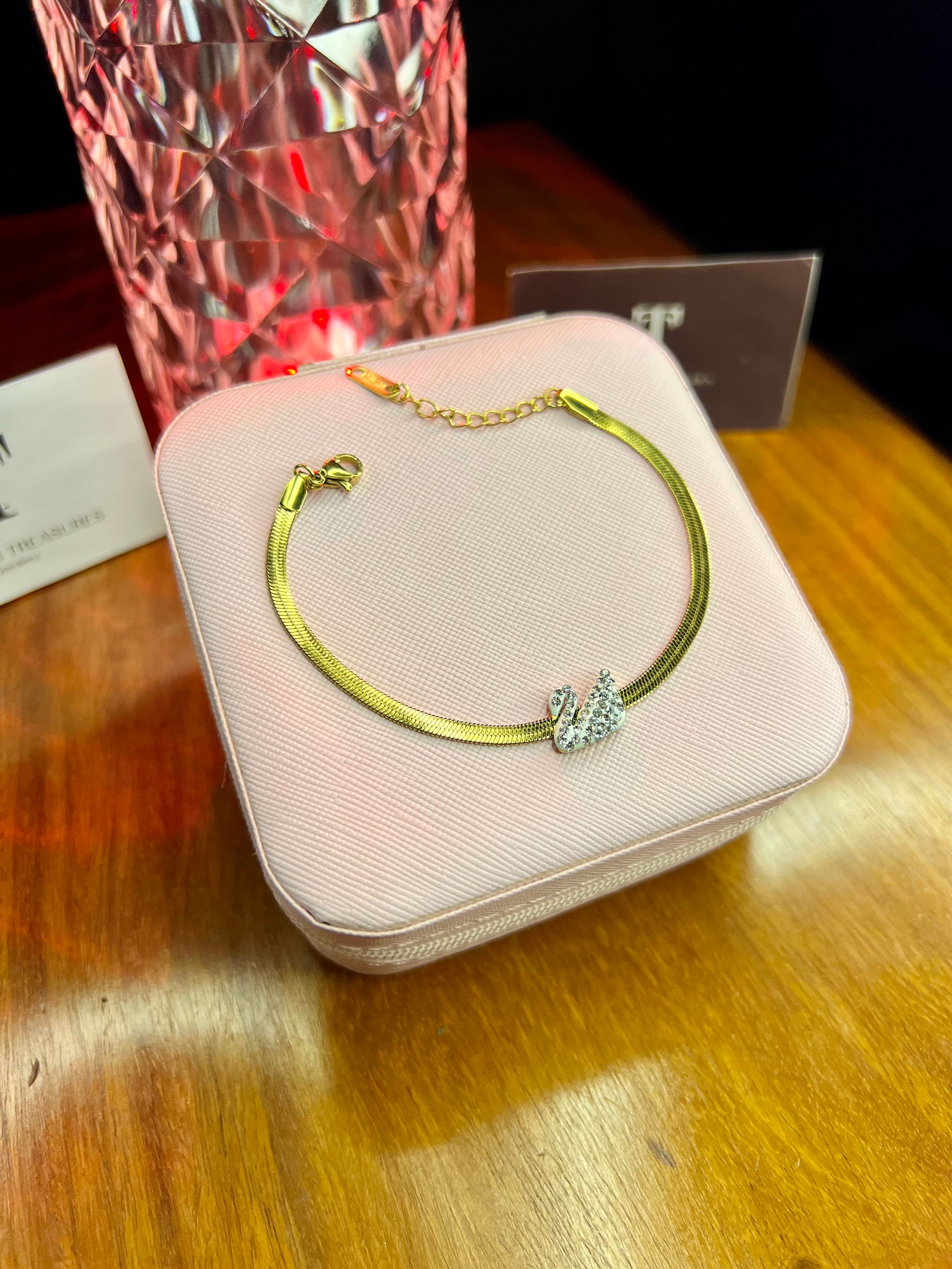 Premium Quality Stainless Steel 18k Silver Swan Snake Chain Bracelet