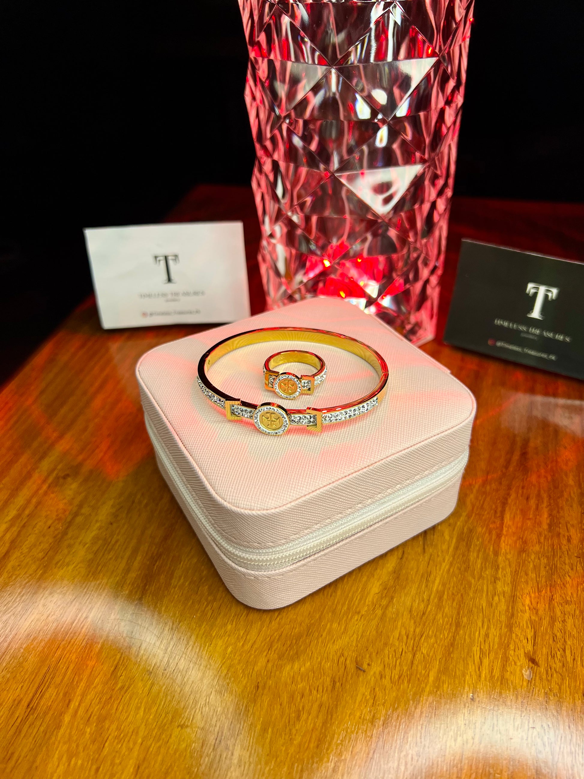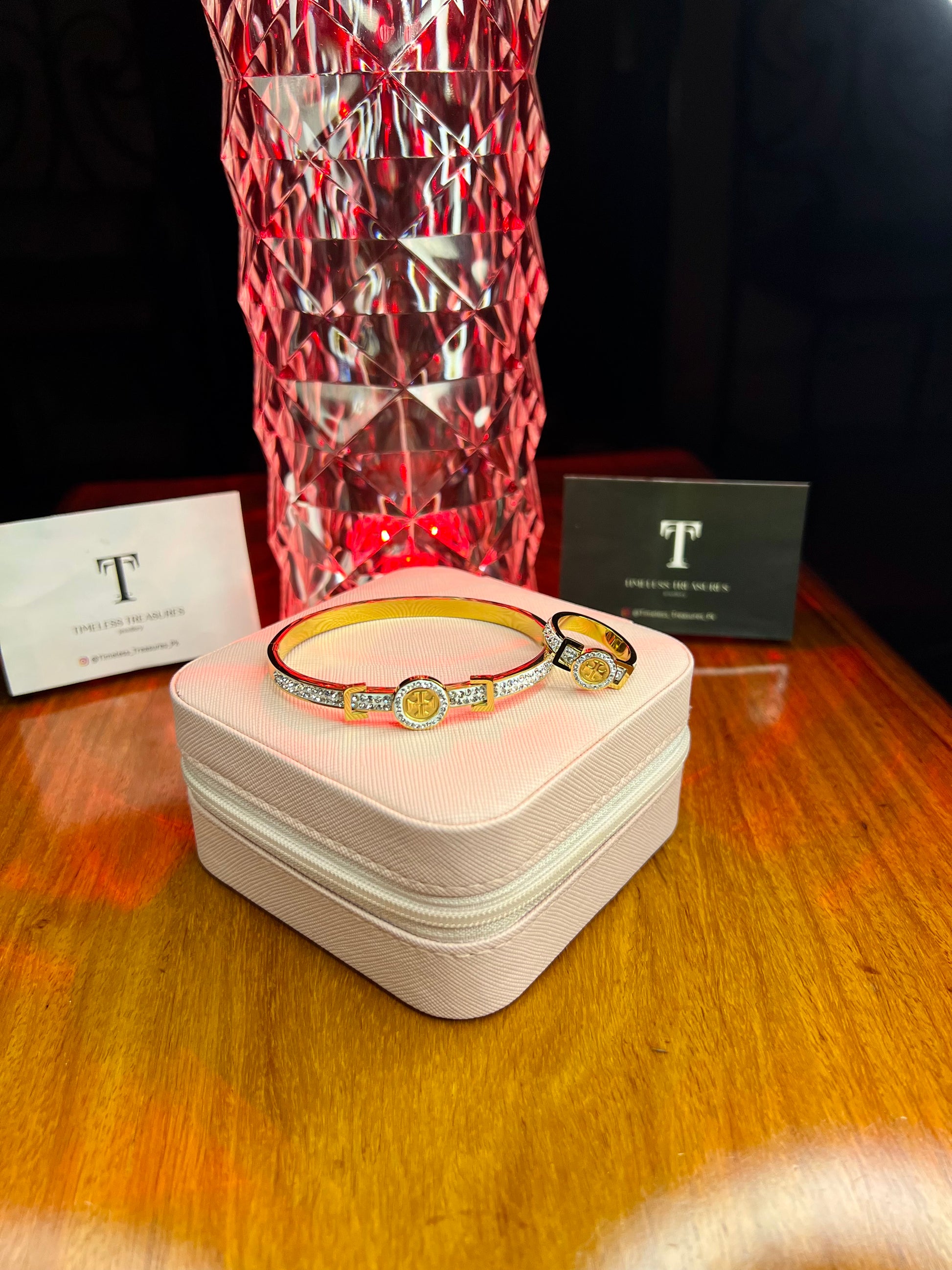 Premium Quality Stainless Steel 18k Tory Royal Handcuff and Ring set