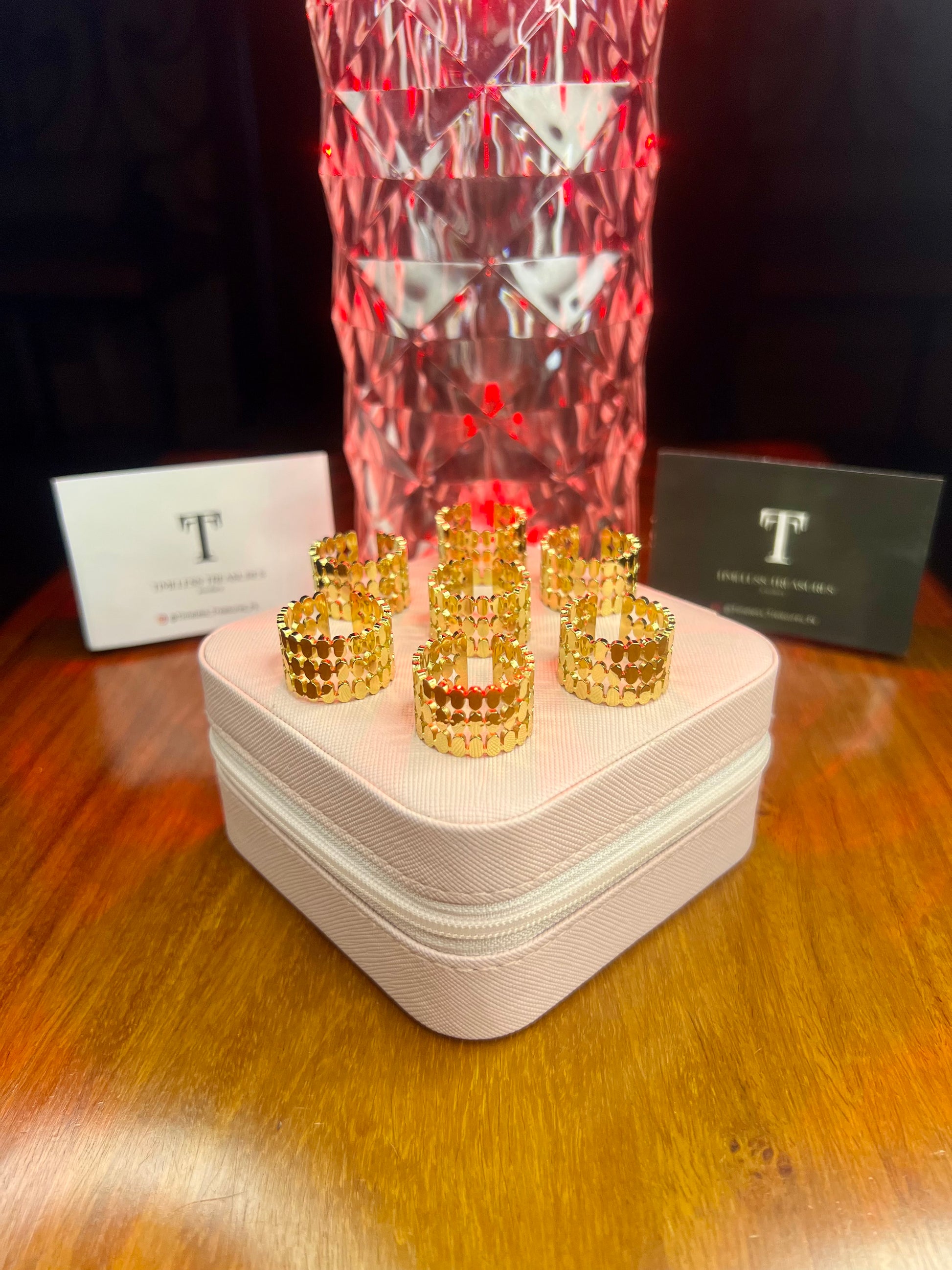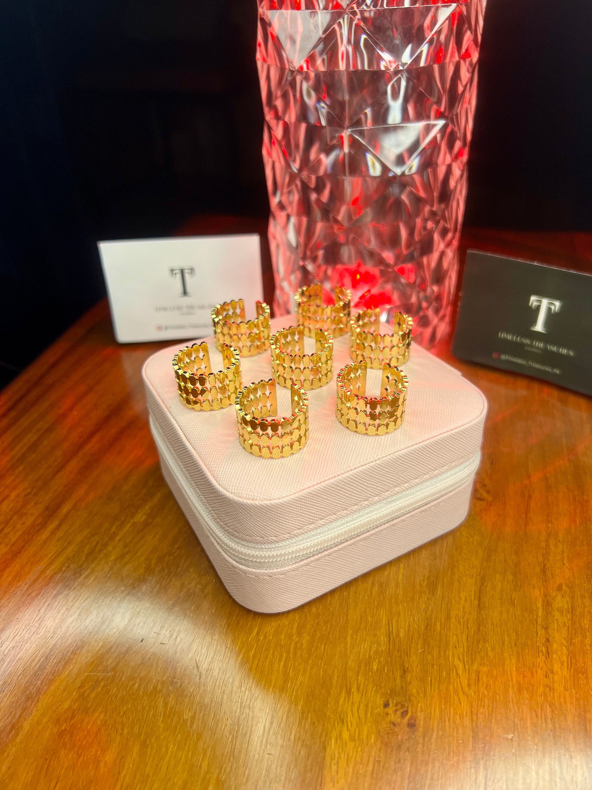 Make a bold statement with our Textured Gold Plated Ring, designed to catch the light—and everyone's attention. Crafted from durable stainless steel and coated with a luxurious layer of high-shine gold plating, this ring features a faceted, reflective texture that exudes strength and sophistication.
