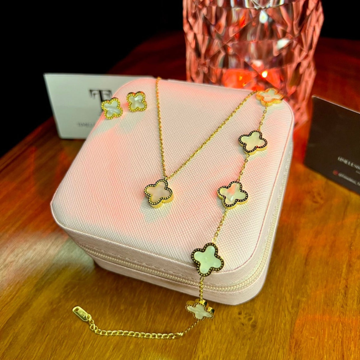 Premium Quality Stainless Steel 18k White Clover 3pc Set