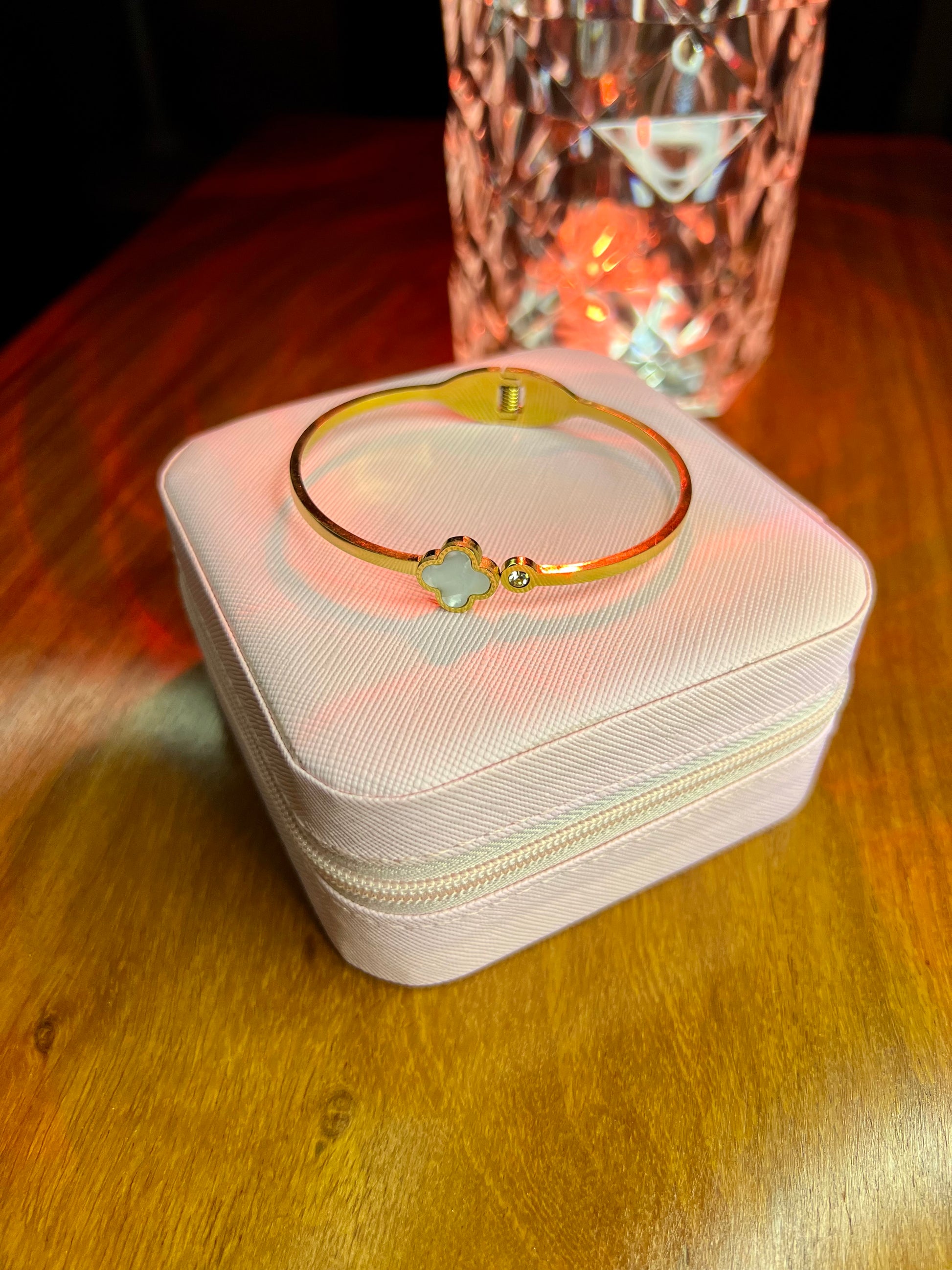 Premium Quality Stainless Steel 18k White Clover Classic Handcuff