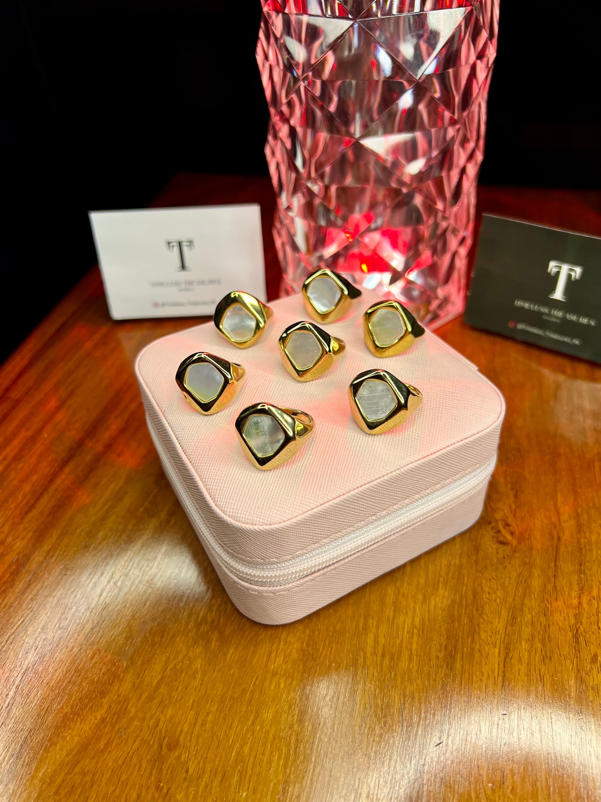 Premium Quality Stainless Steel 18k White Enamel Gold Ring
