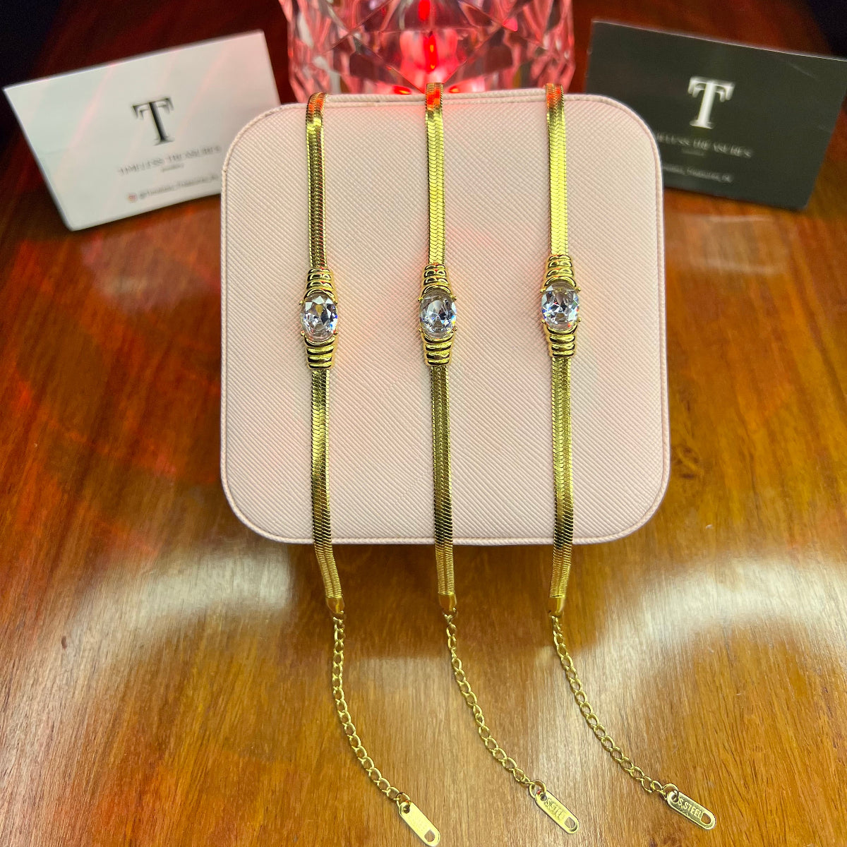 These timeless pieces of 18k Gold Plated jewellery made up with high quality stainless steel are hypoallergenic and Water Proof.